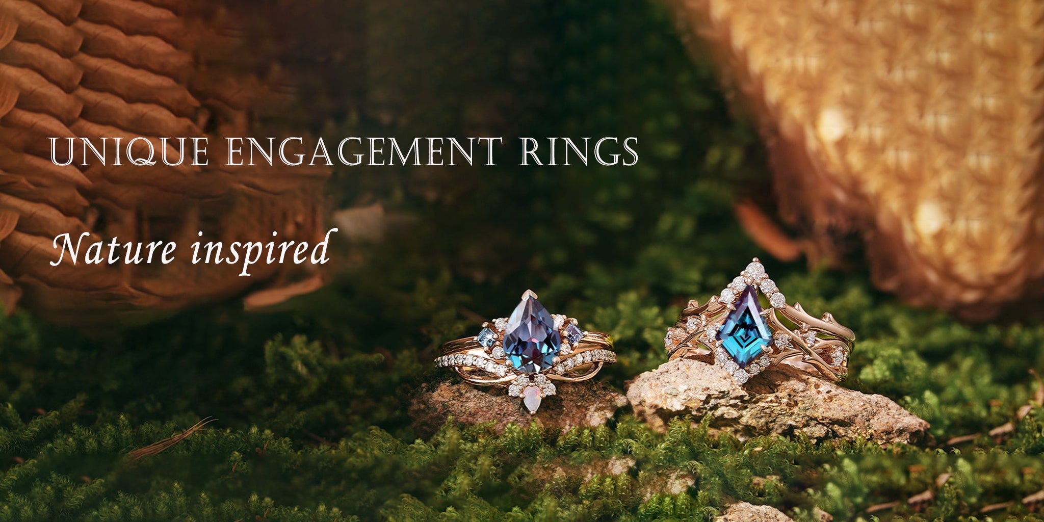 Unique Aurora Moon Oval Moissanite Engagement Ring