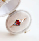 Unique Briar Rose Oval Garnet and Moissanite Ring