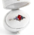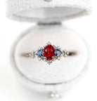 Unique Briar Rose Three Stone Oval Garnet and Lab Alexandrite Wedding Ring