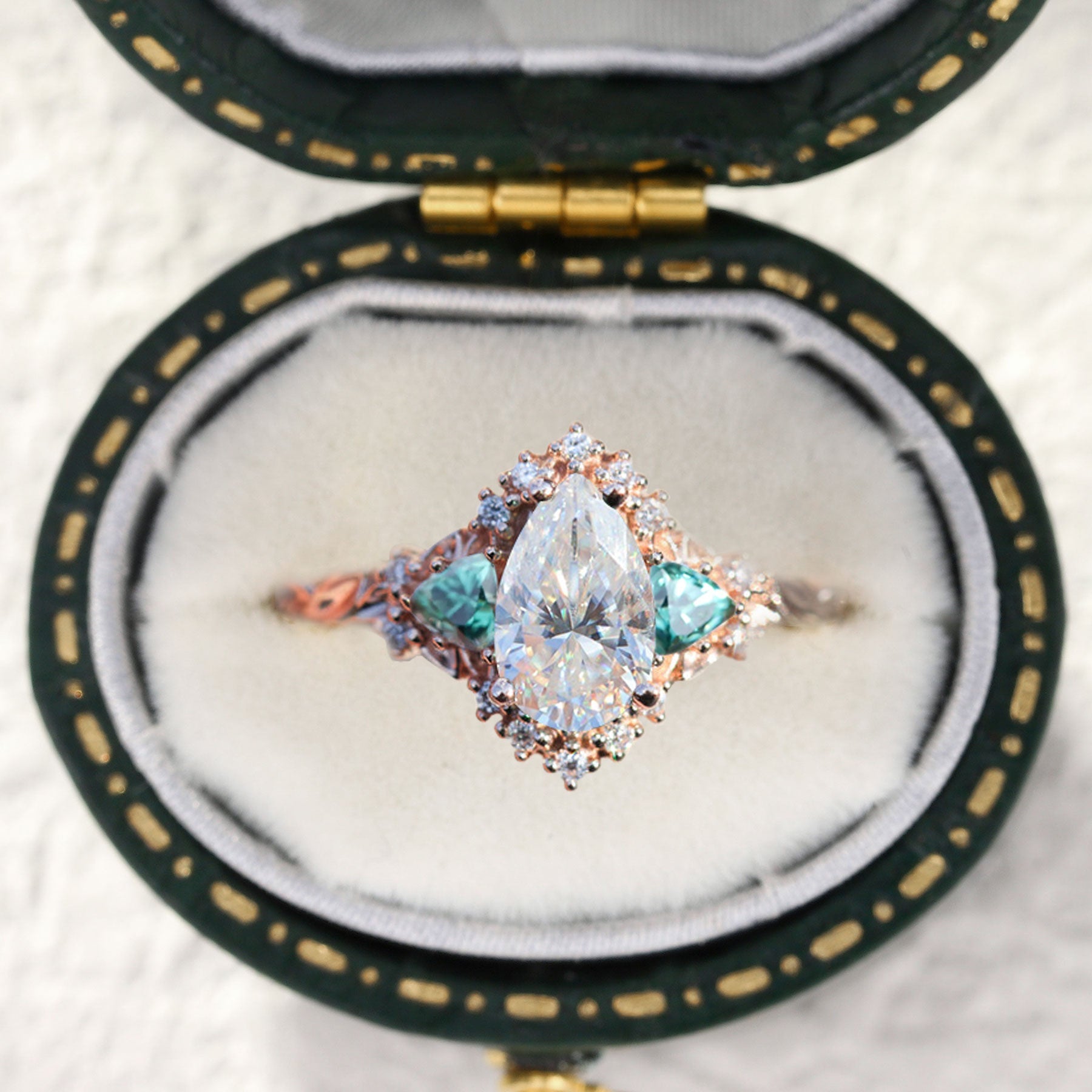 Customize your own Unique Briar Half Halo Pear Moissanite Ring
