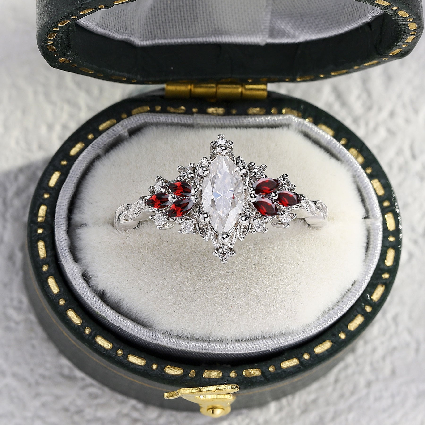 Customize your own Unique Starlight Marquise Moissanite and Lab Ruby Ring