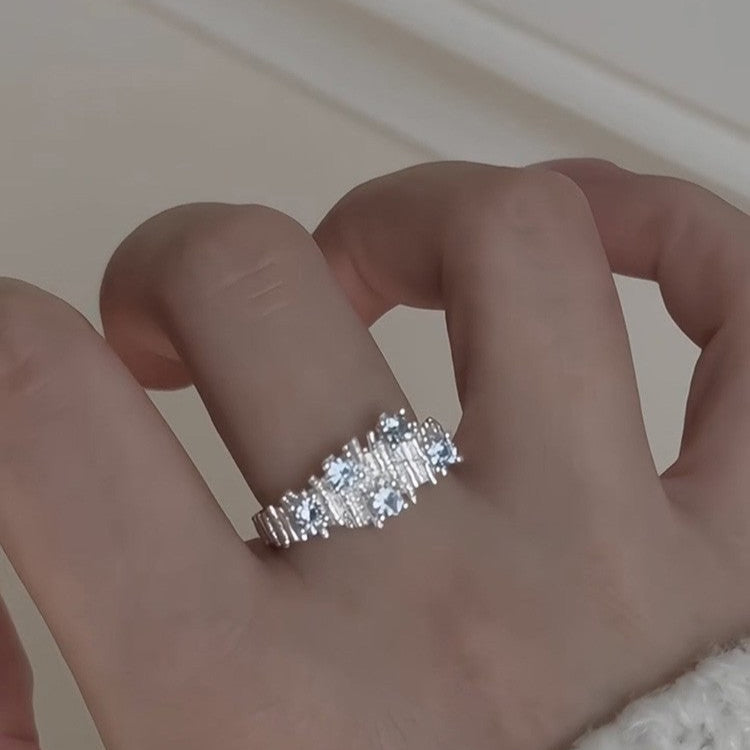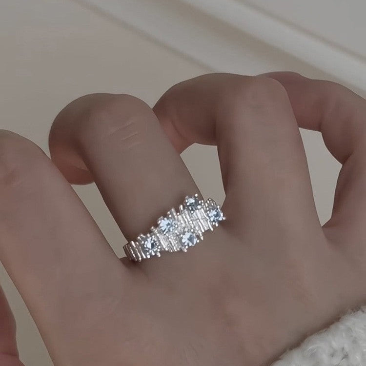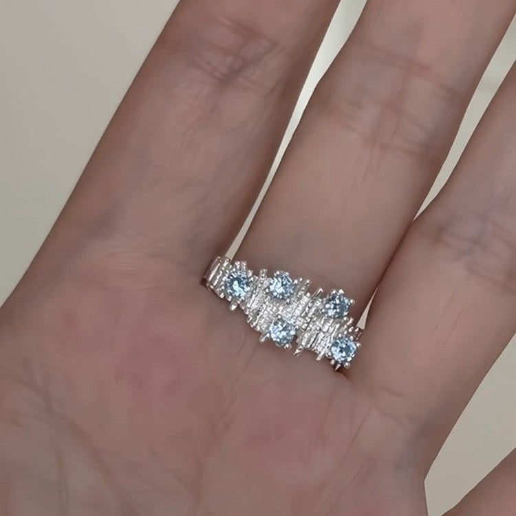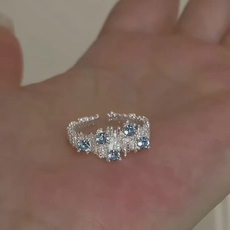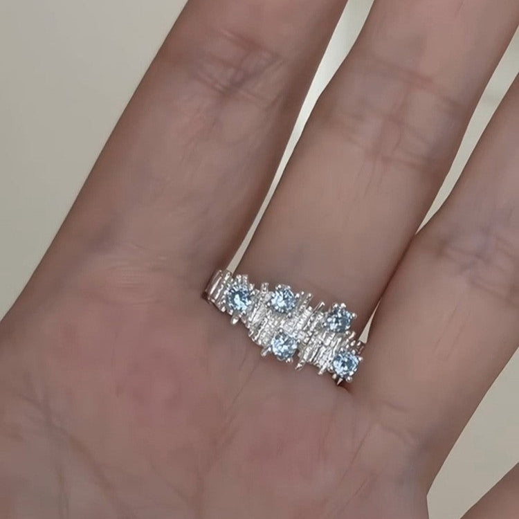 Irregular Wrinkle Blue Stone Open Ring In Sterling Silver