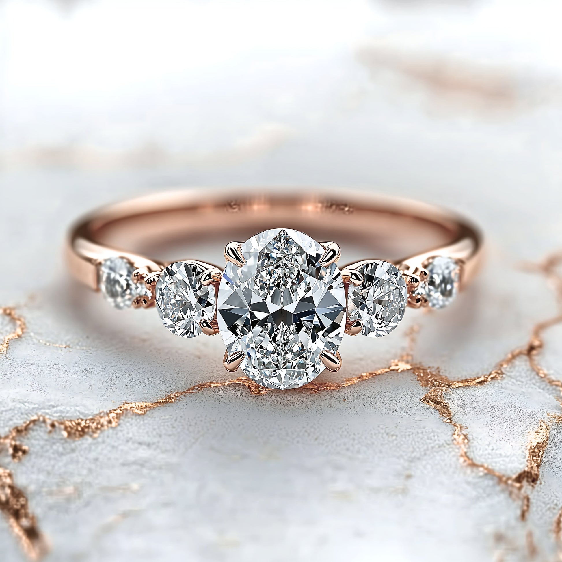 There’s something special about a ring that catches the eye without needing to shout. This design features an oval-cut moissanite center stone with a quiet, captivating brilliance—like a secret waiting to be discovered.