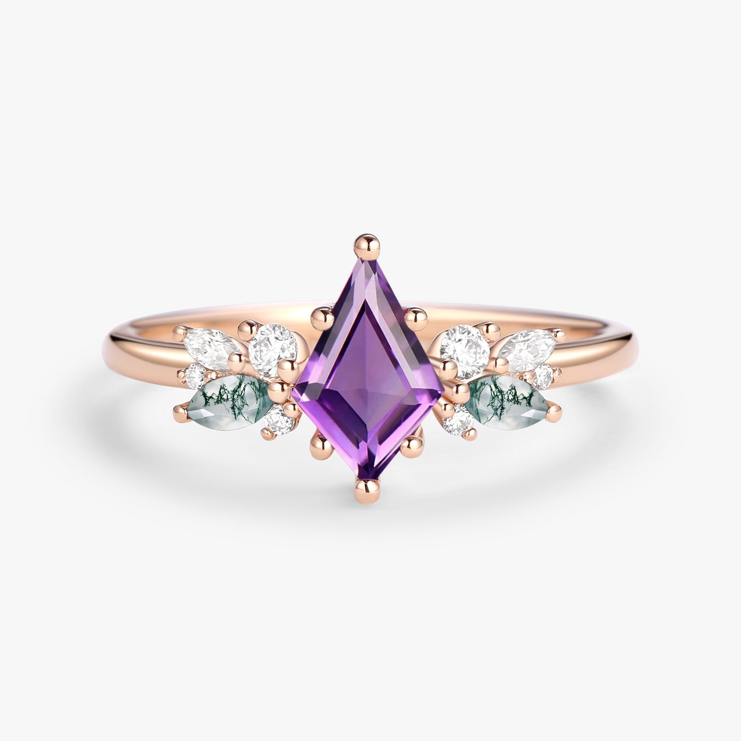 Unique Amethyst and Moss Agate Rose Engagement Ring