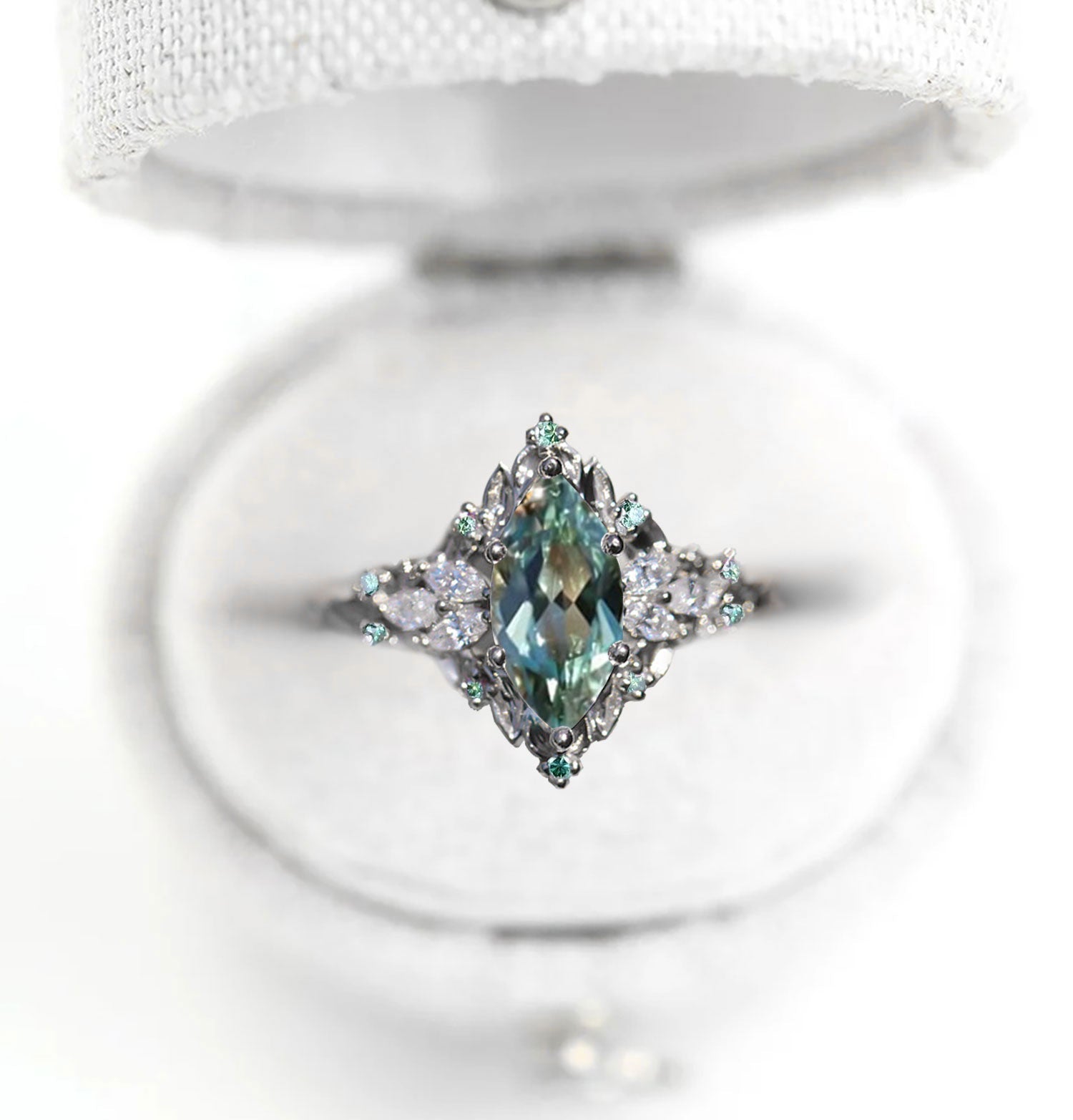 Unique floral engagement rings Briar Rose Starlight Marquise Green Lab Sapphire Ring