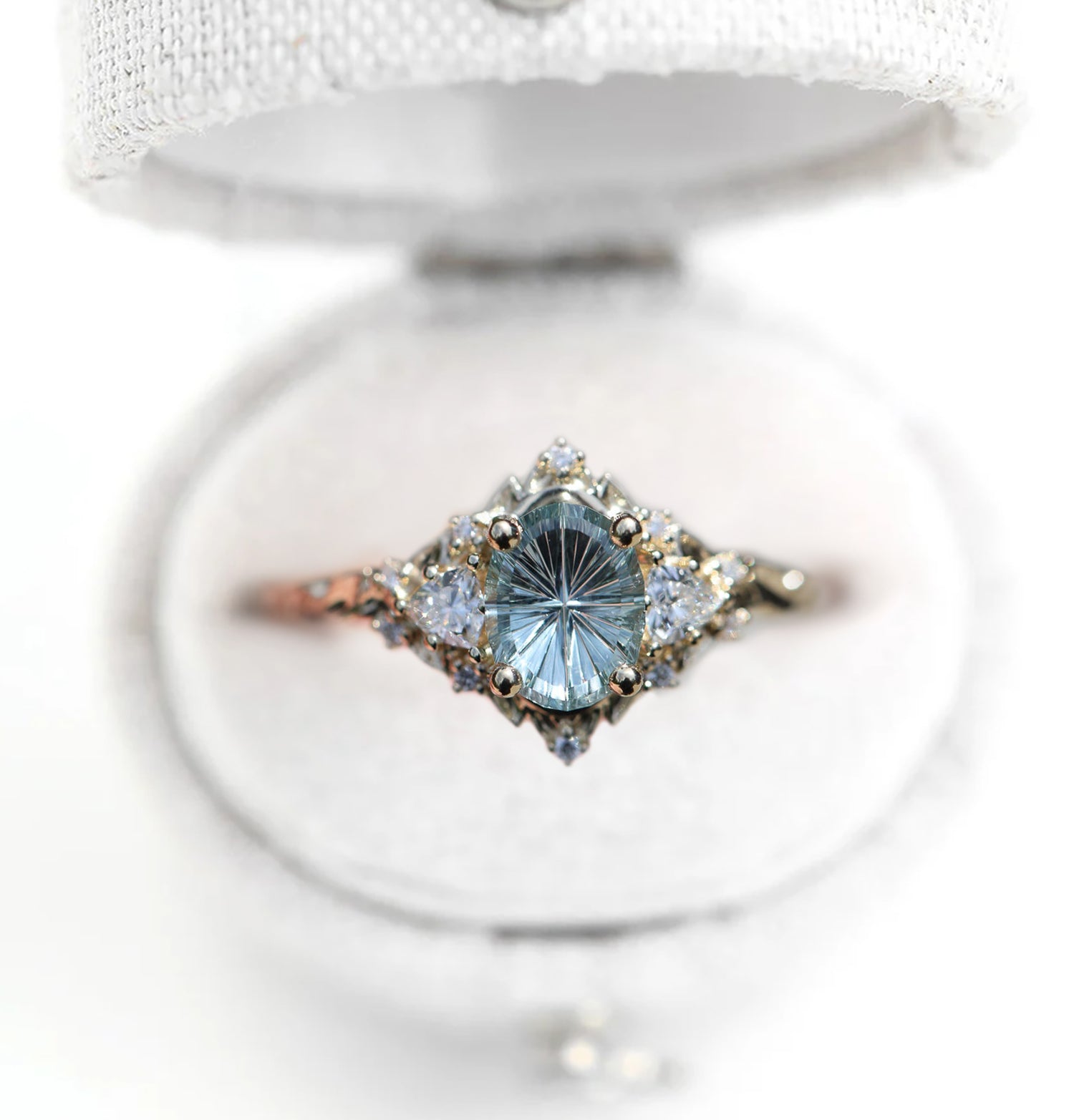 Unique Briar Rose Three Stone Starbrite Cut Oval Sapphire Ring