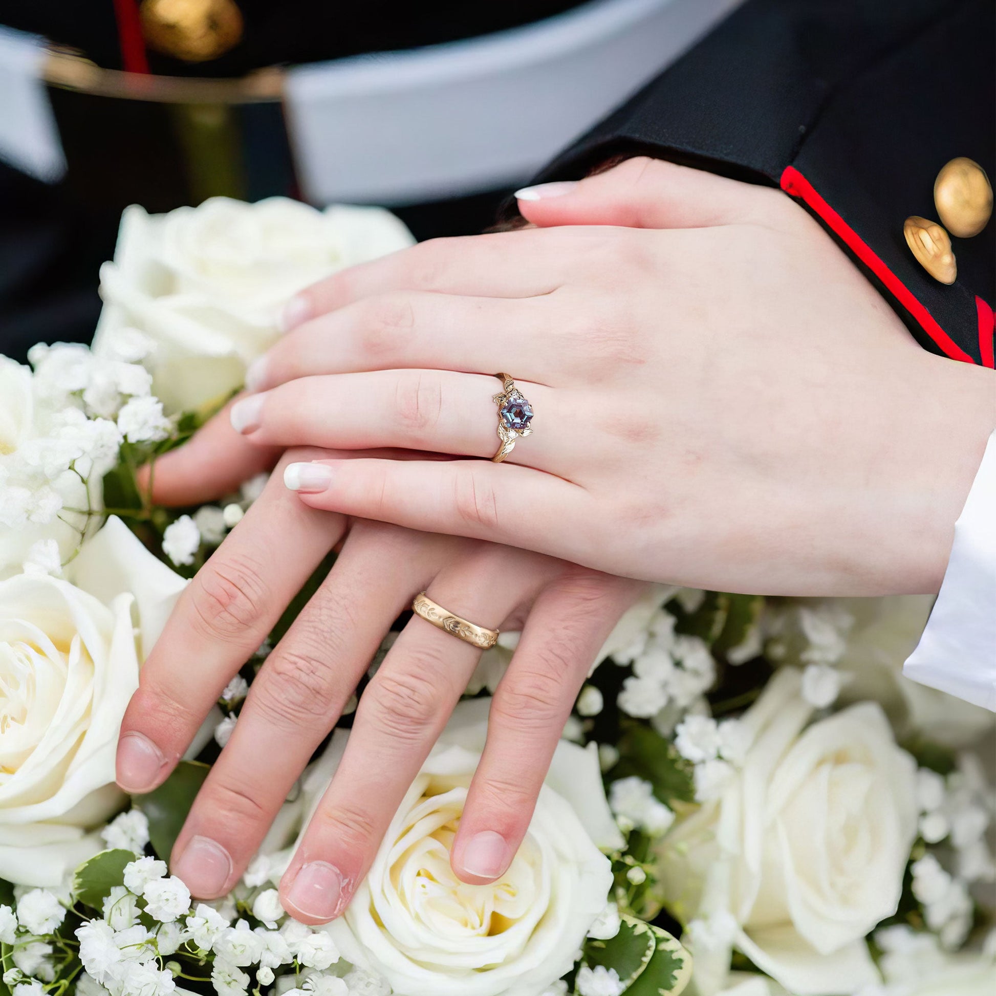 Unique Hexagon Alexandrite Couple Promise Engagement Ring Set