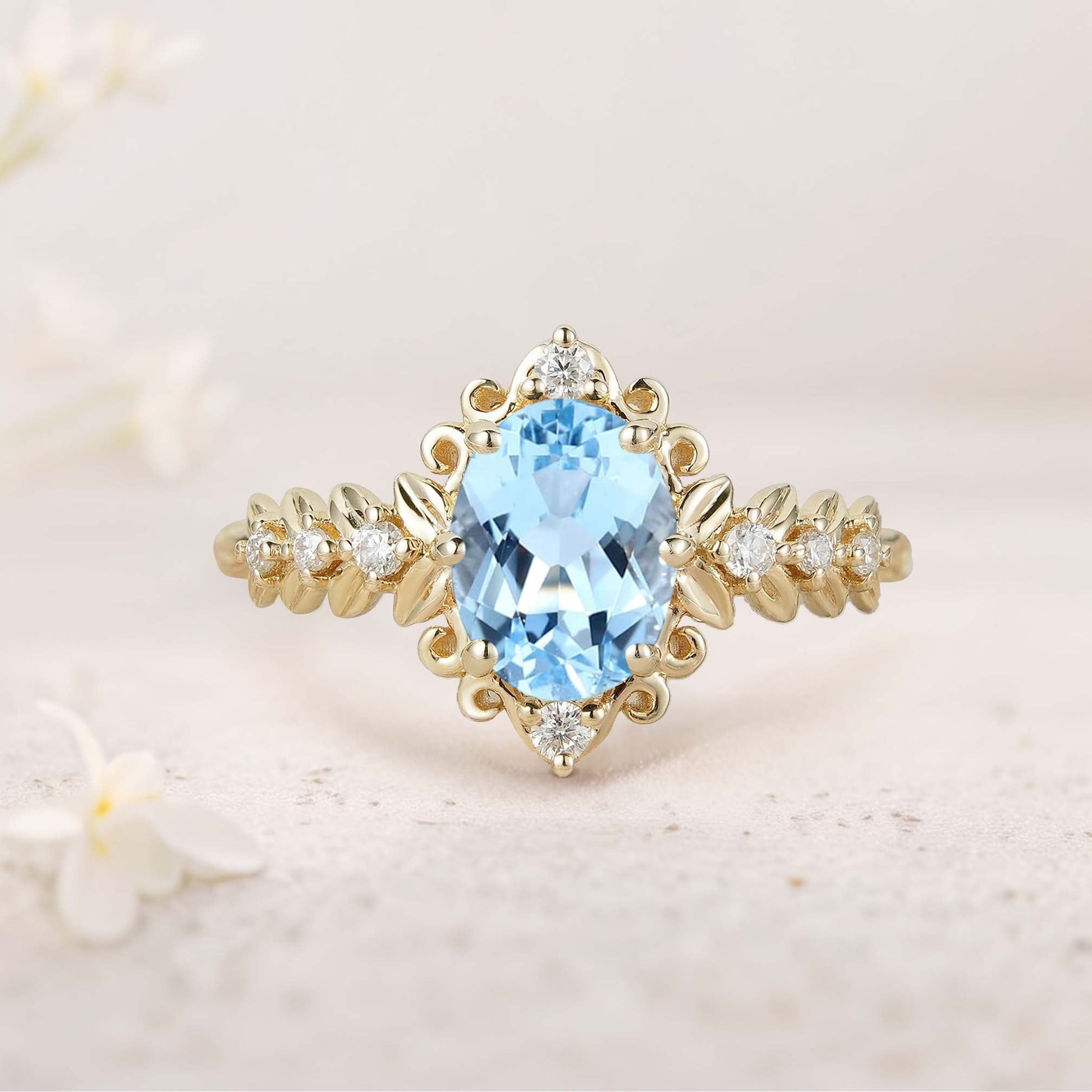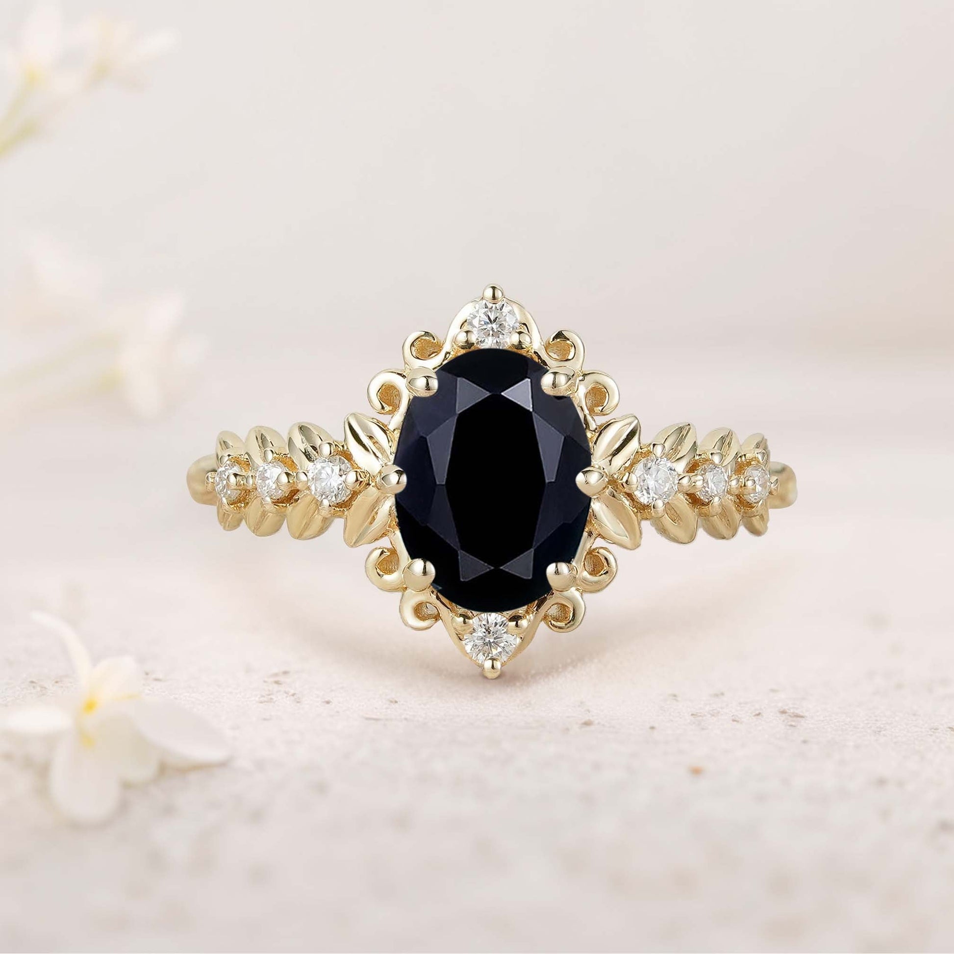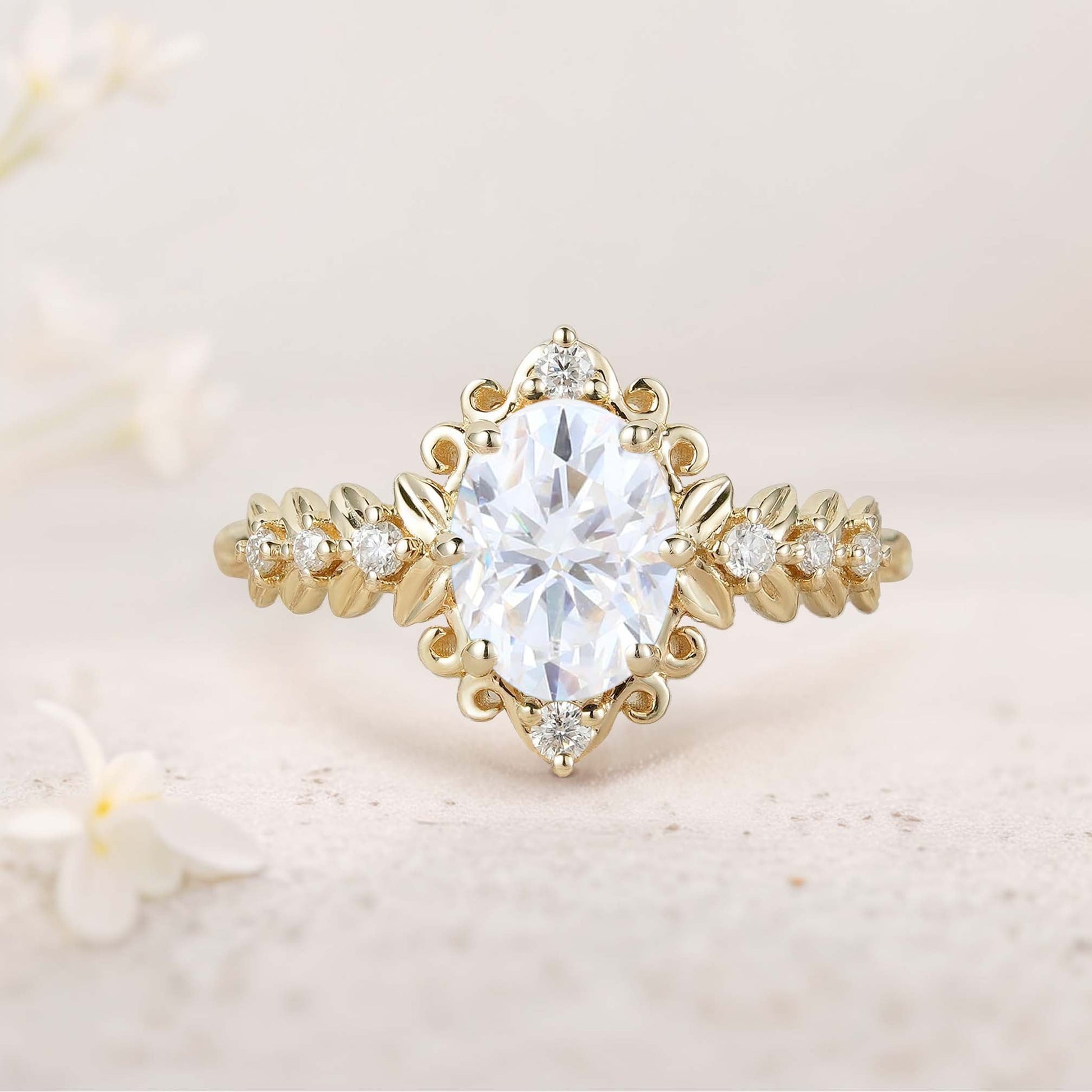 Unique Elegant Royal Oval Amethyst Filigree Leaf Engagement Ring