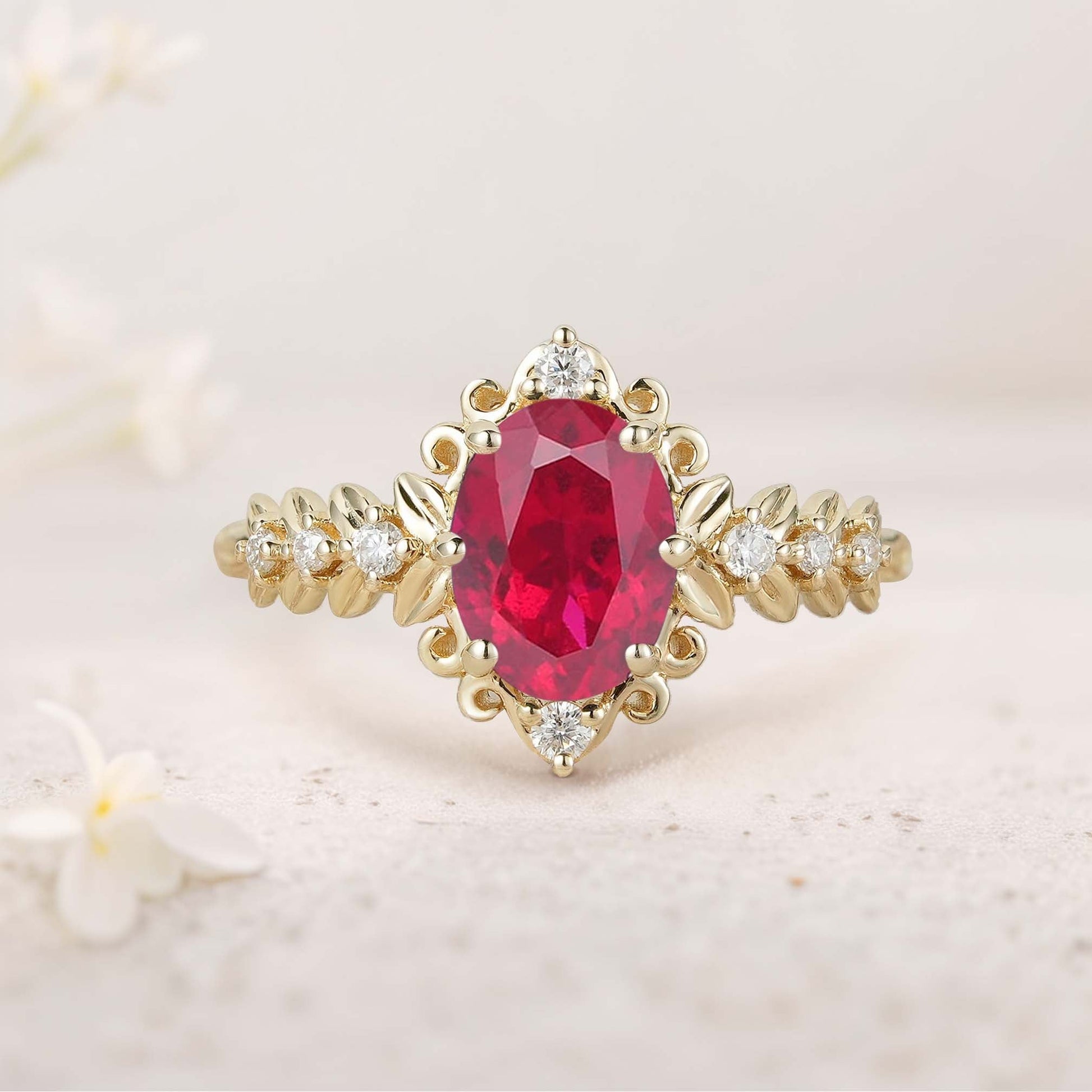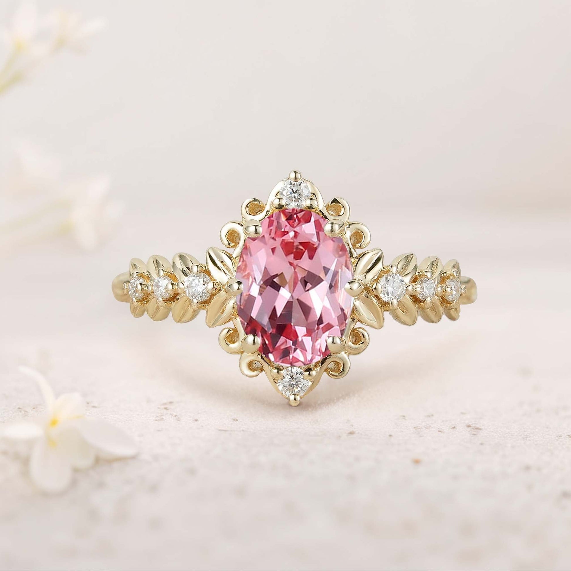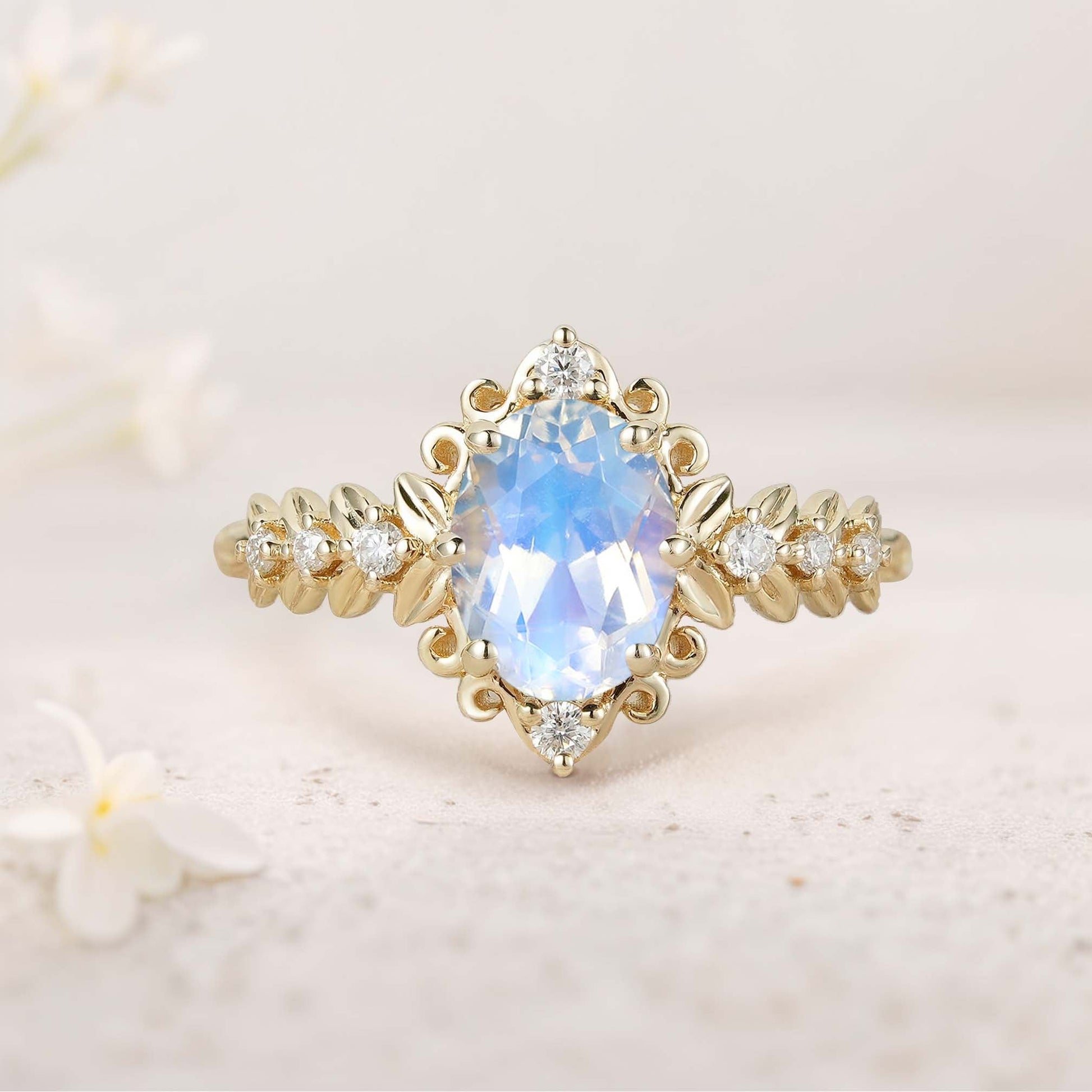 Unique Elegant Royal Oval Amethyst Filigree Leaf Engagement Ring