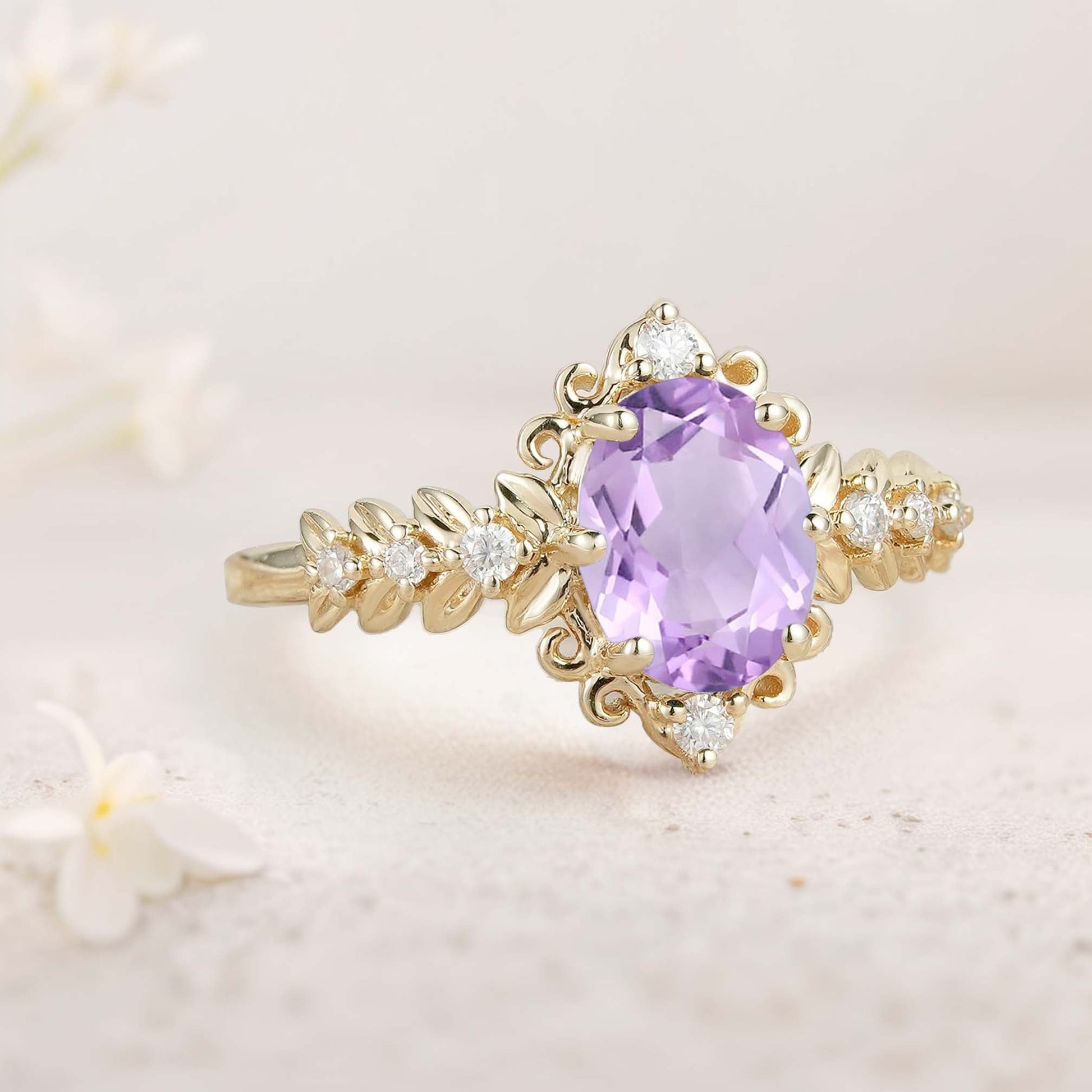 Unique floral engagement rings Elegant Royal Oval Amethyst Filigree Leaf Engagement Ring