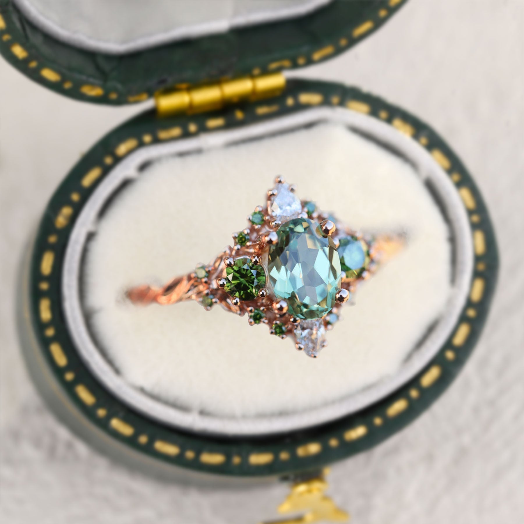 Unique Enchanted Briar Oval Green Lab Sapphire Ring