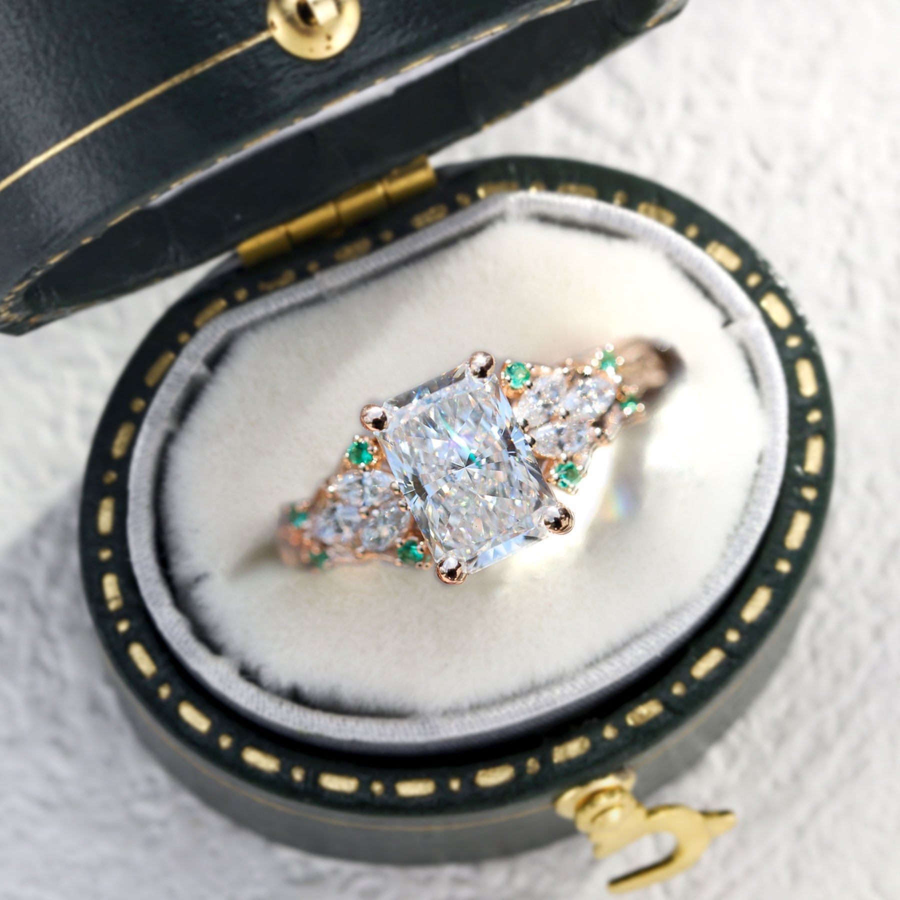 Unique Enchanted garden Emerald cut Moissanite Ring