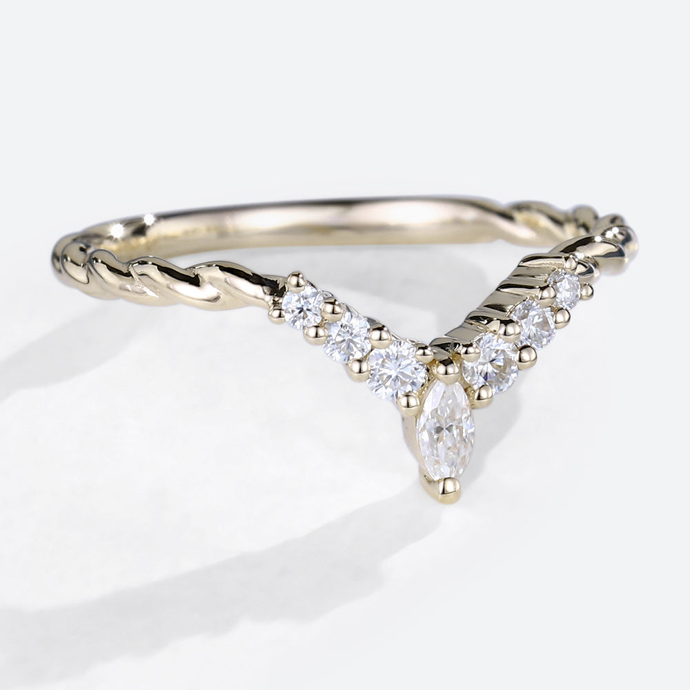 Unique Eternity Twisted Marquise Moissanite Curved Matching Wedding Band
