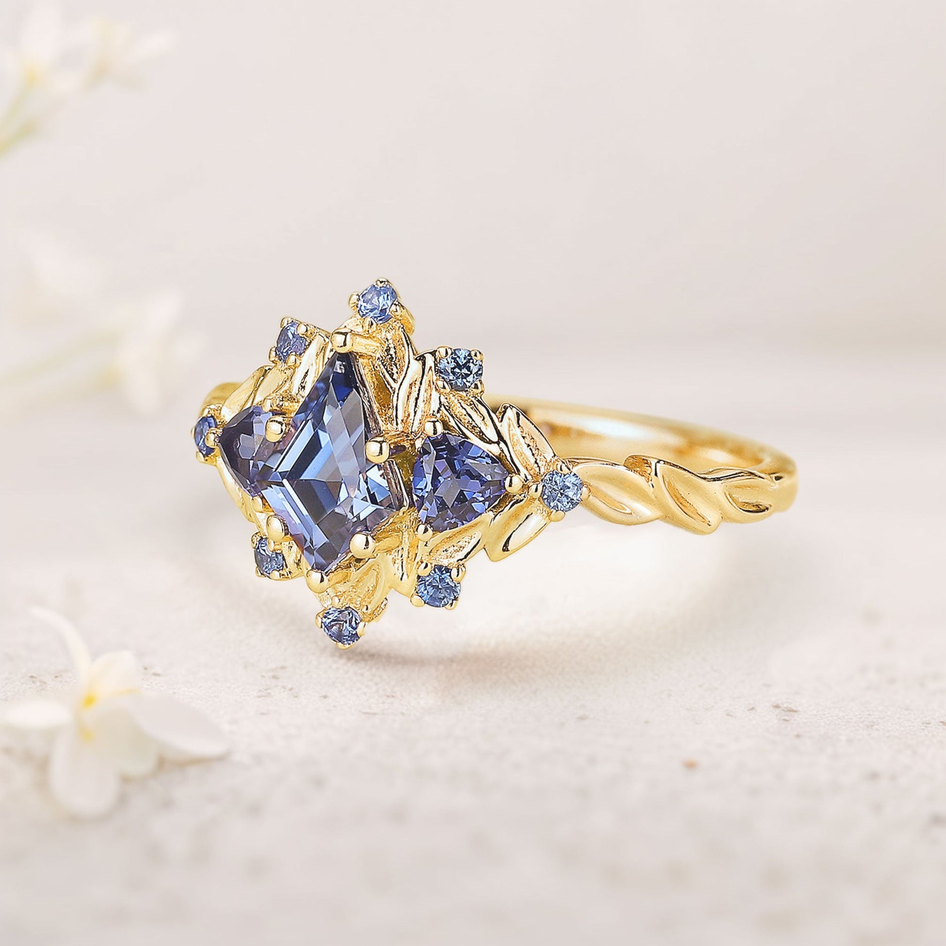 Unique floral engagement rings Kite Lab Sapphire Engagement Ring Leaf Flower Wedding Ring
