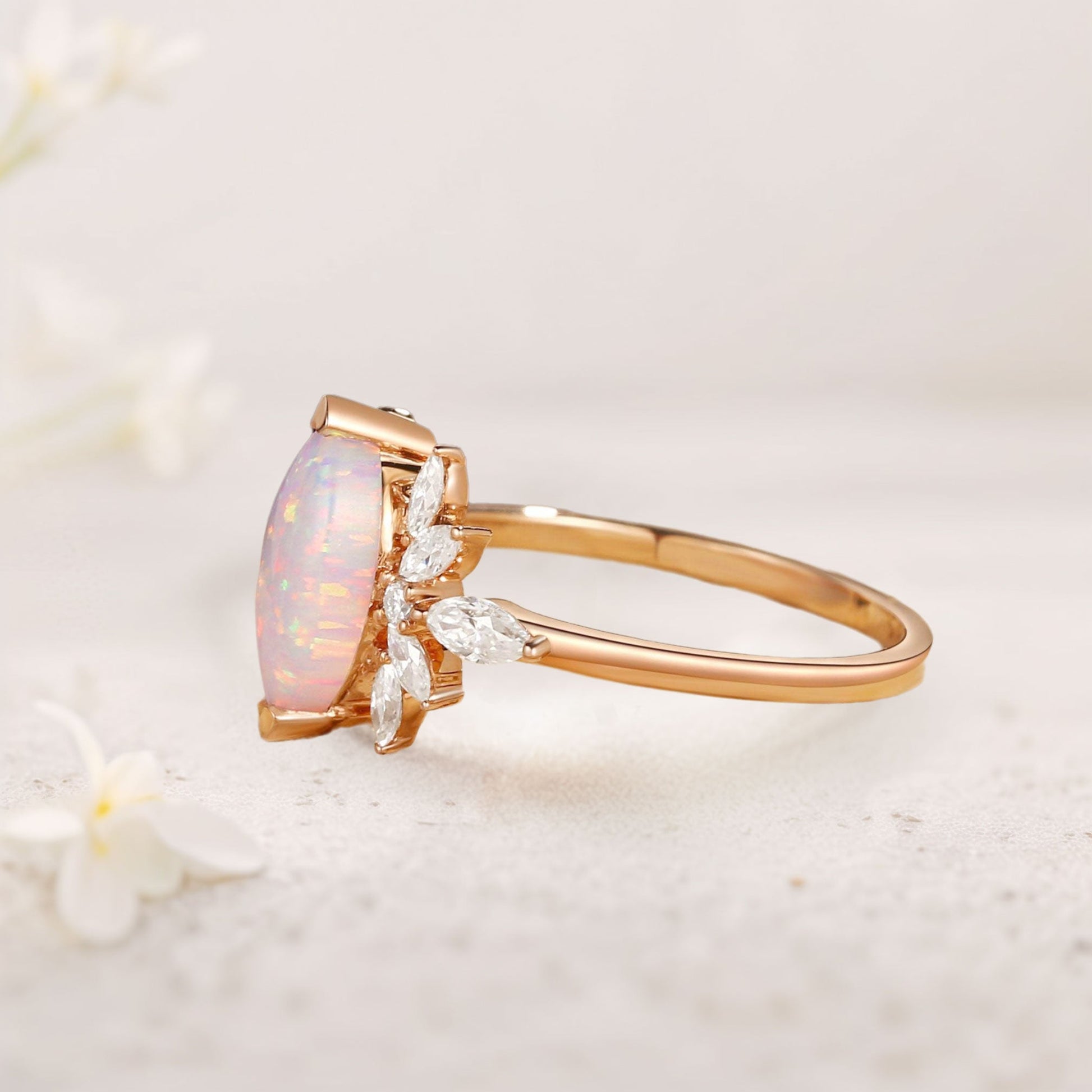 Unique floral engagement rings Marquise Lab Opal Butterfly Fairy Engagement Ring
