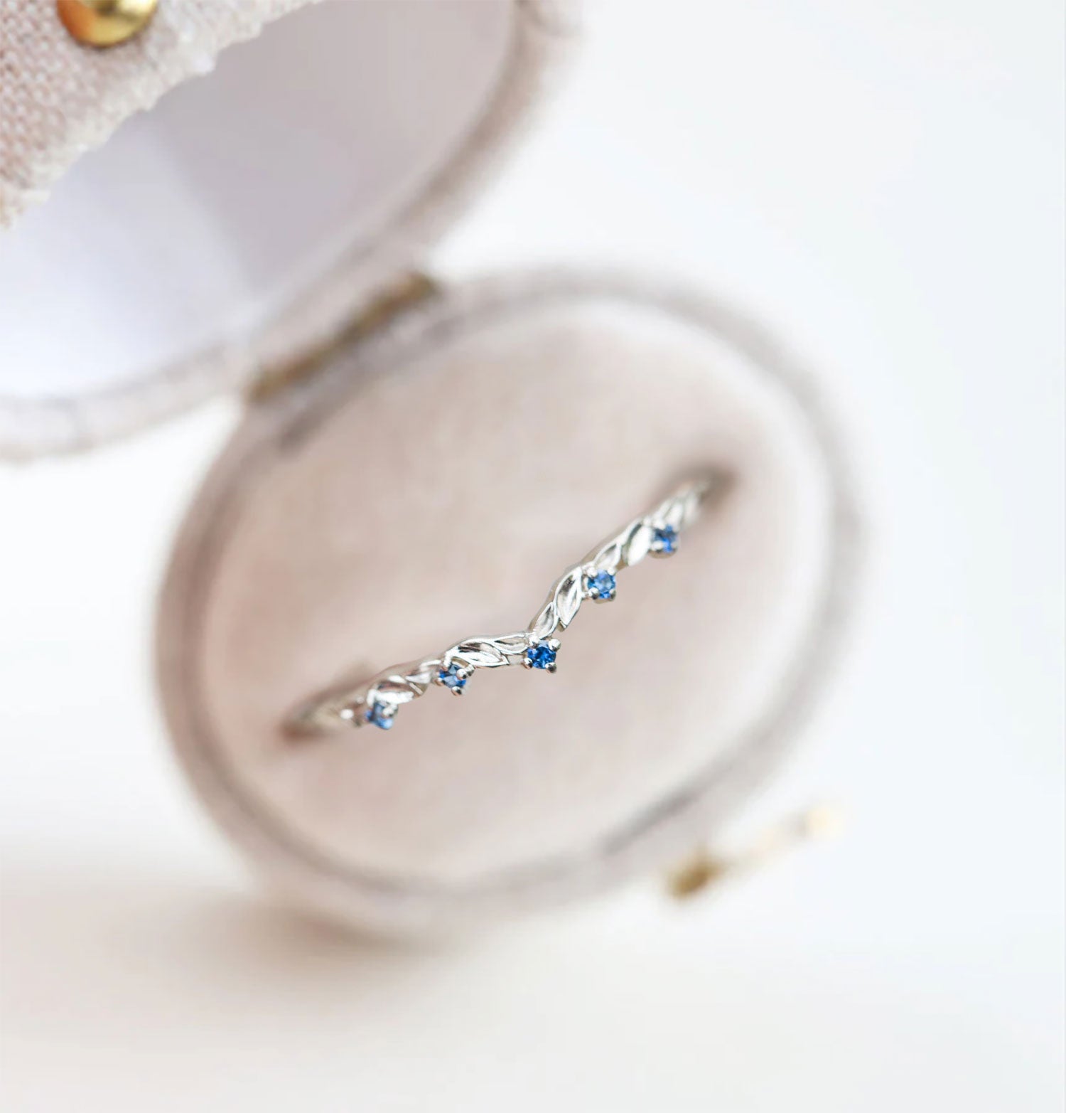 Unique floral engagement rings Round Lab Sapphire Wedding Band Engagement Ring