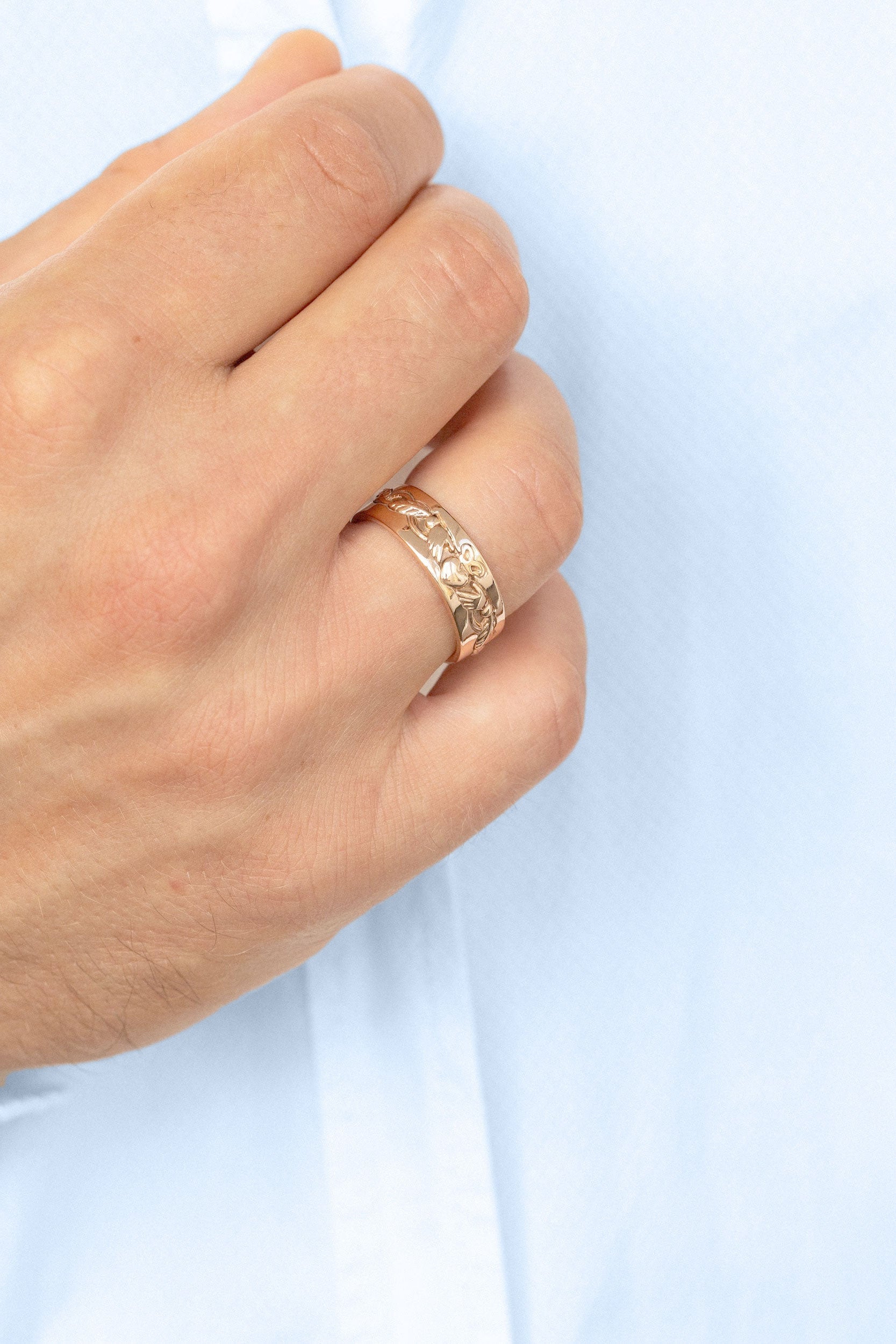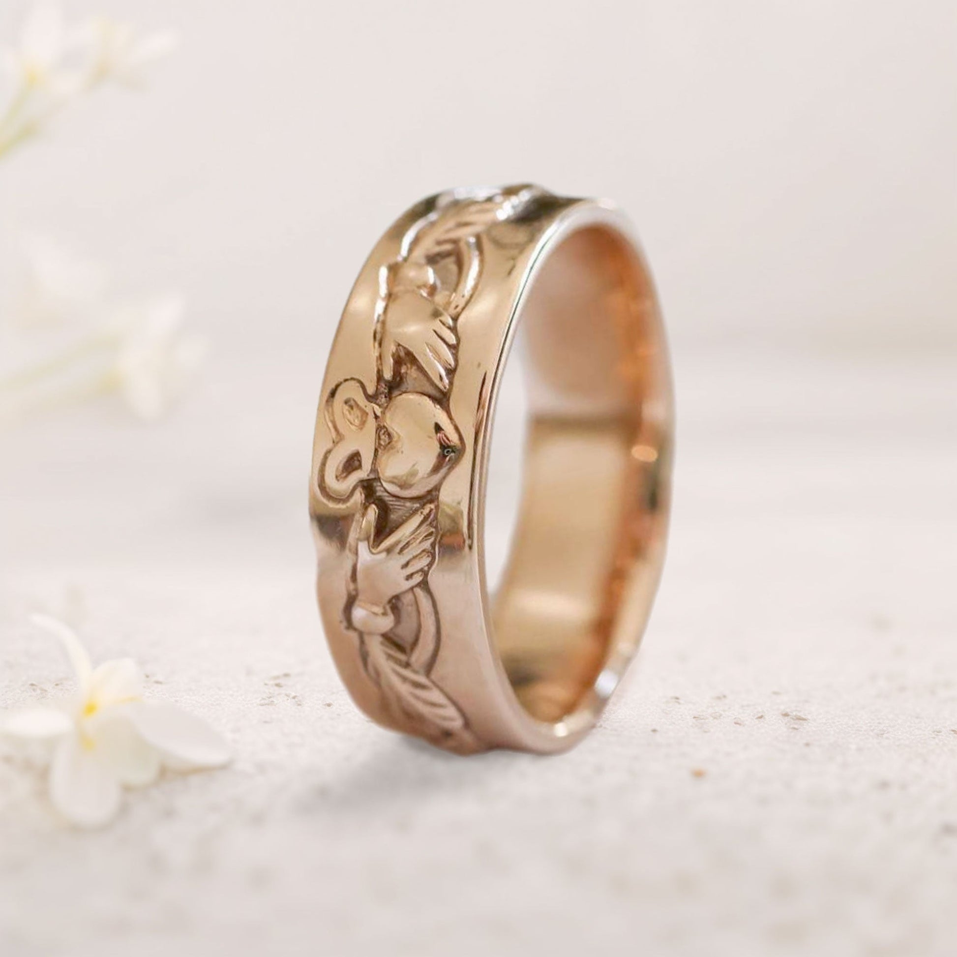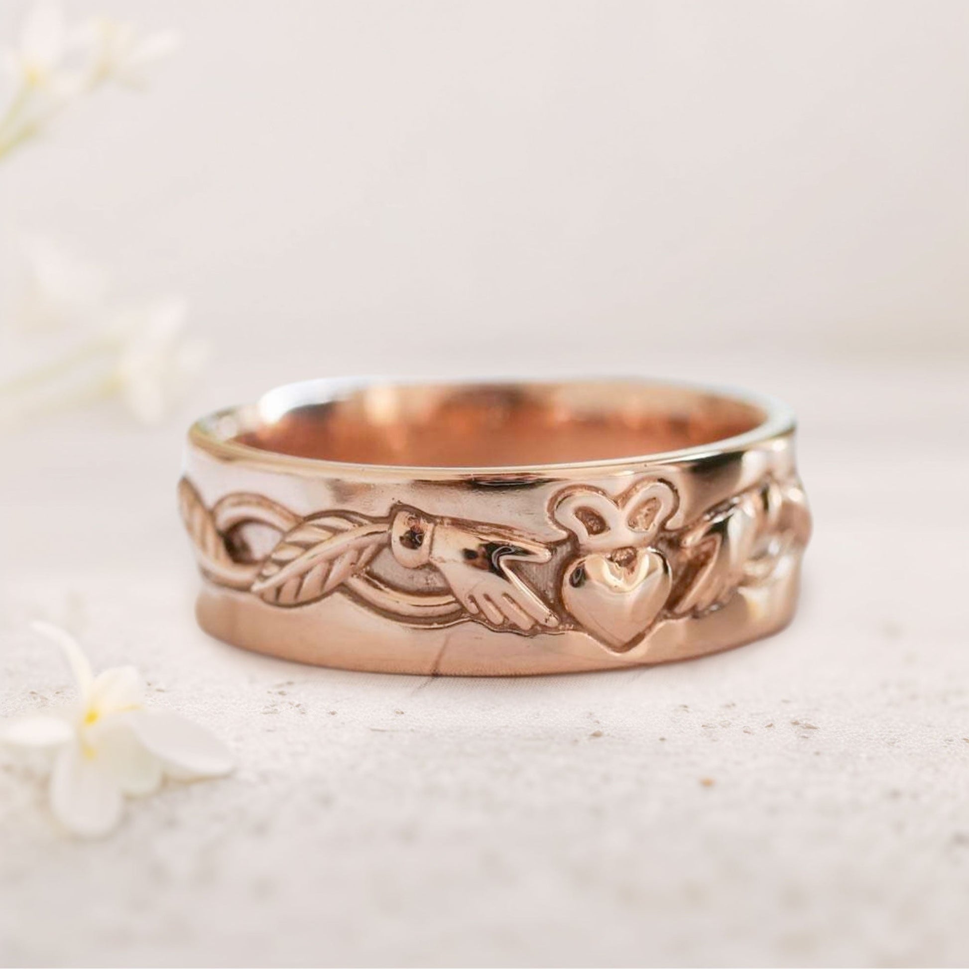 Unique floral engagement rings Gold Claddagh Wedding Band For Men
