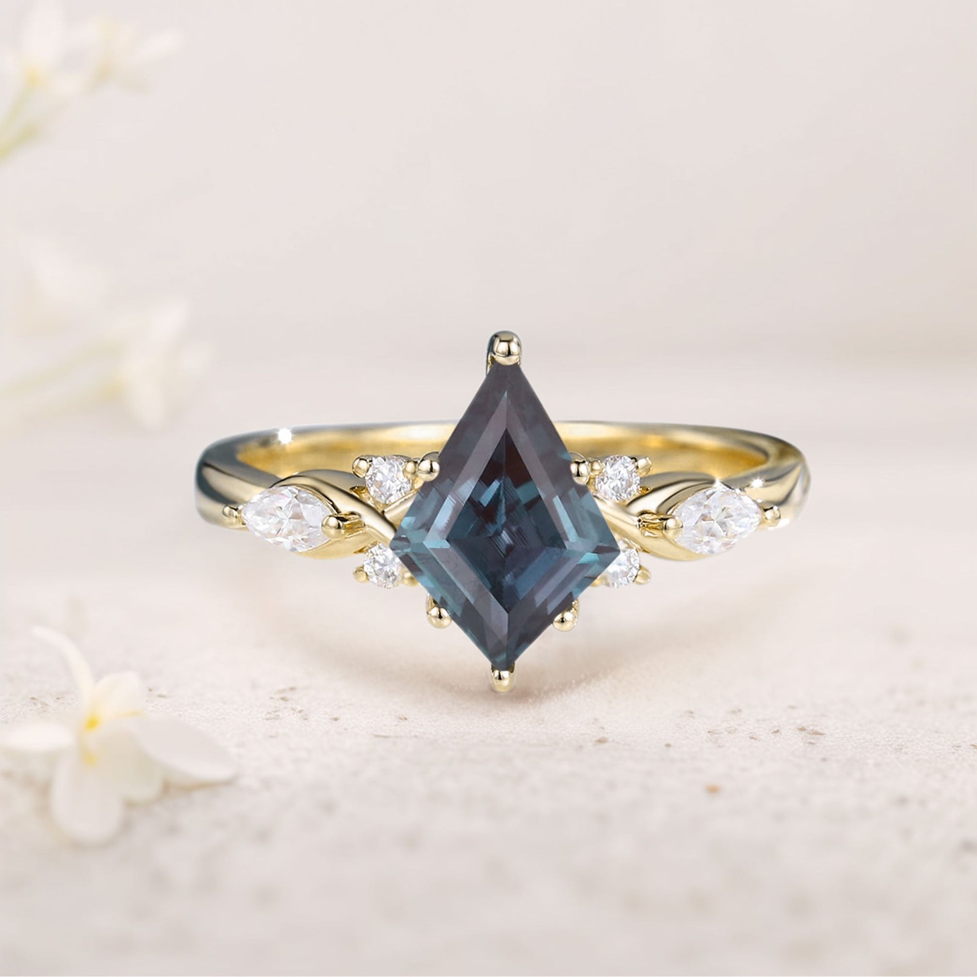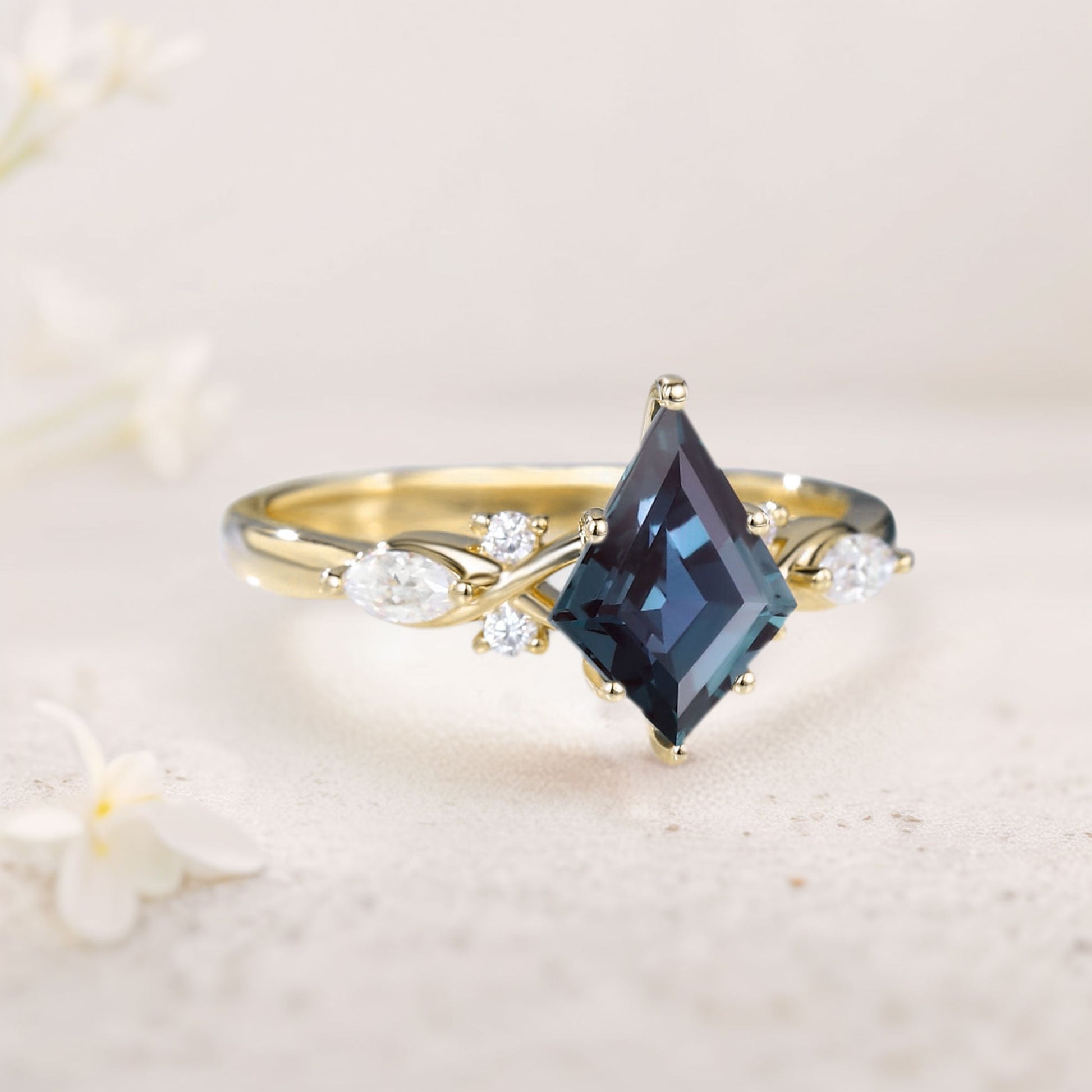 Unique Kite Lab Alexandrite Engagement Ring Twisted Bridal Ring