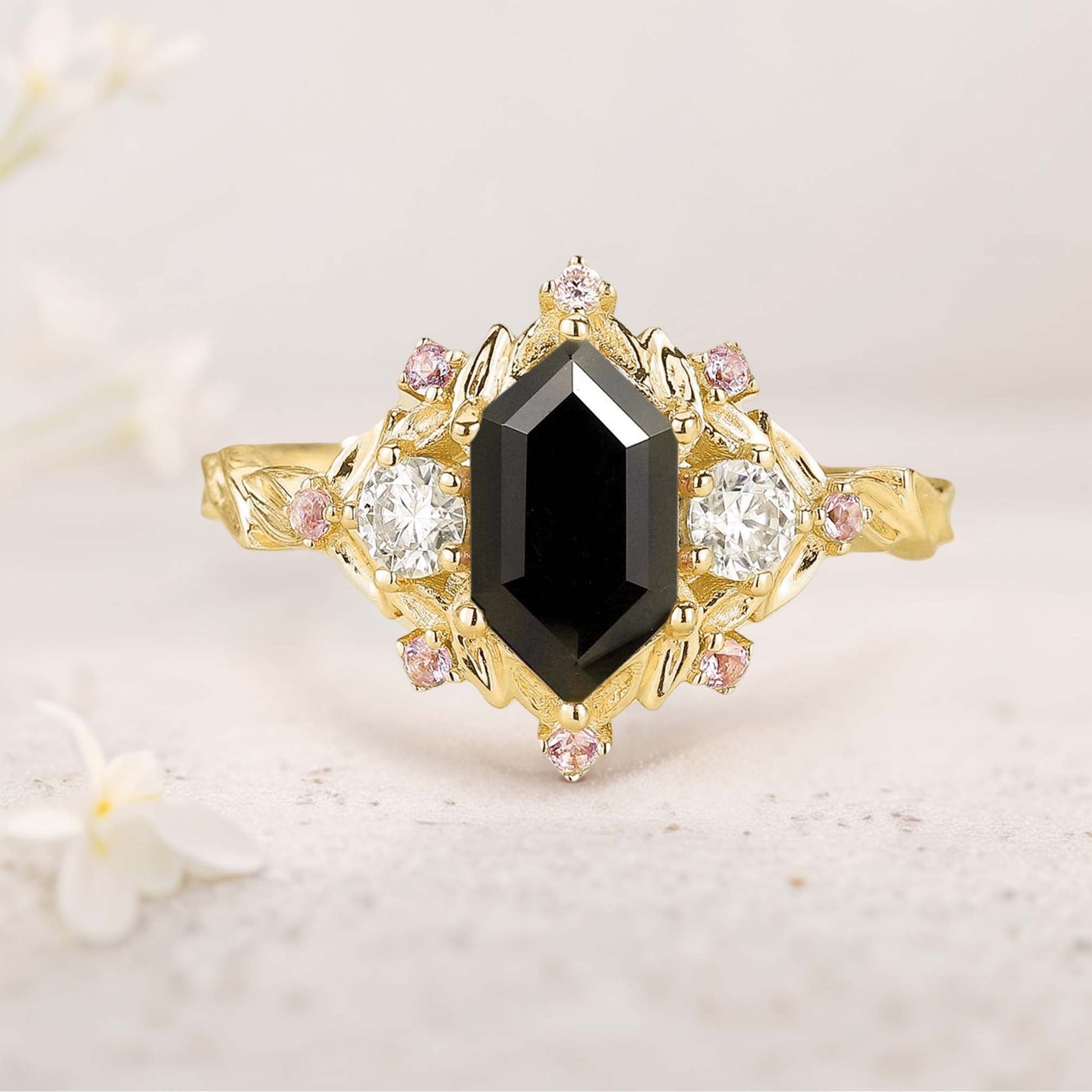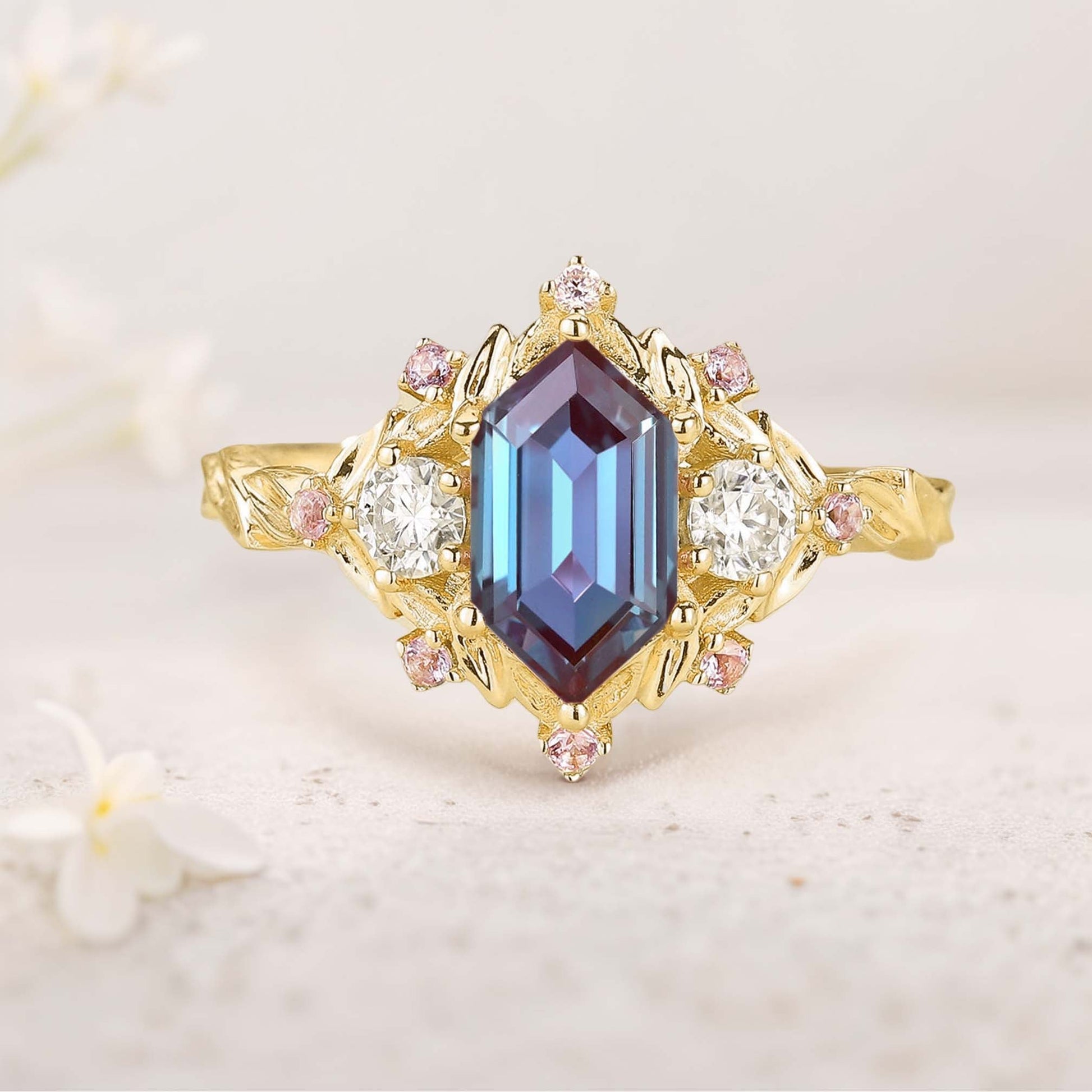 Unique floral engagement rings Long Hexagon Amethyst Cluster Wedding Ring Promise Ring For Women