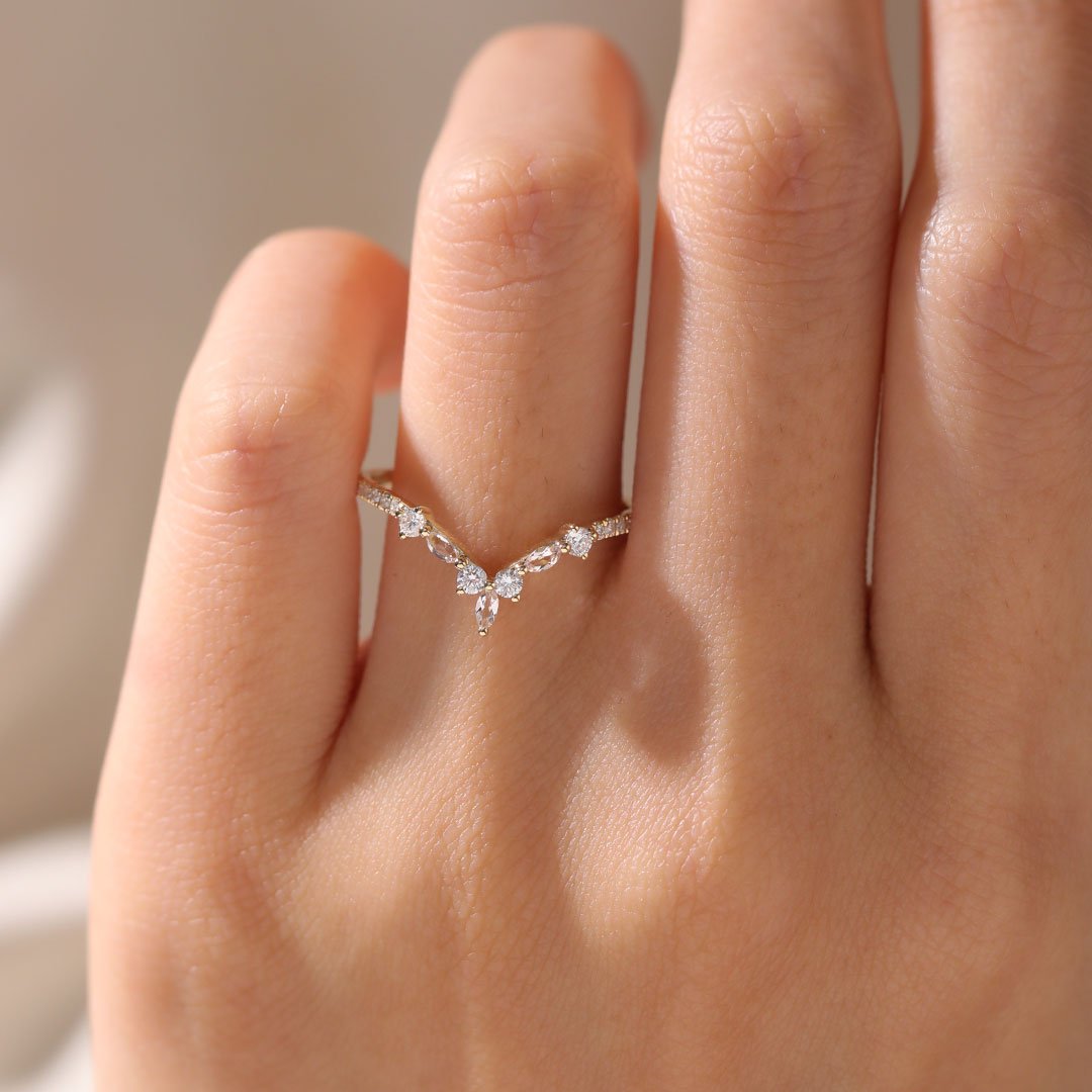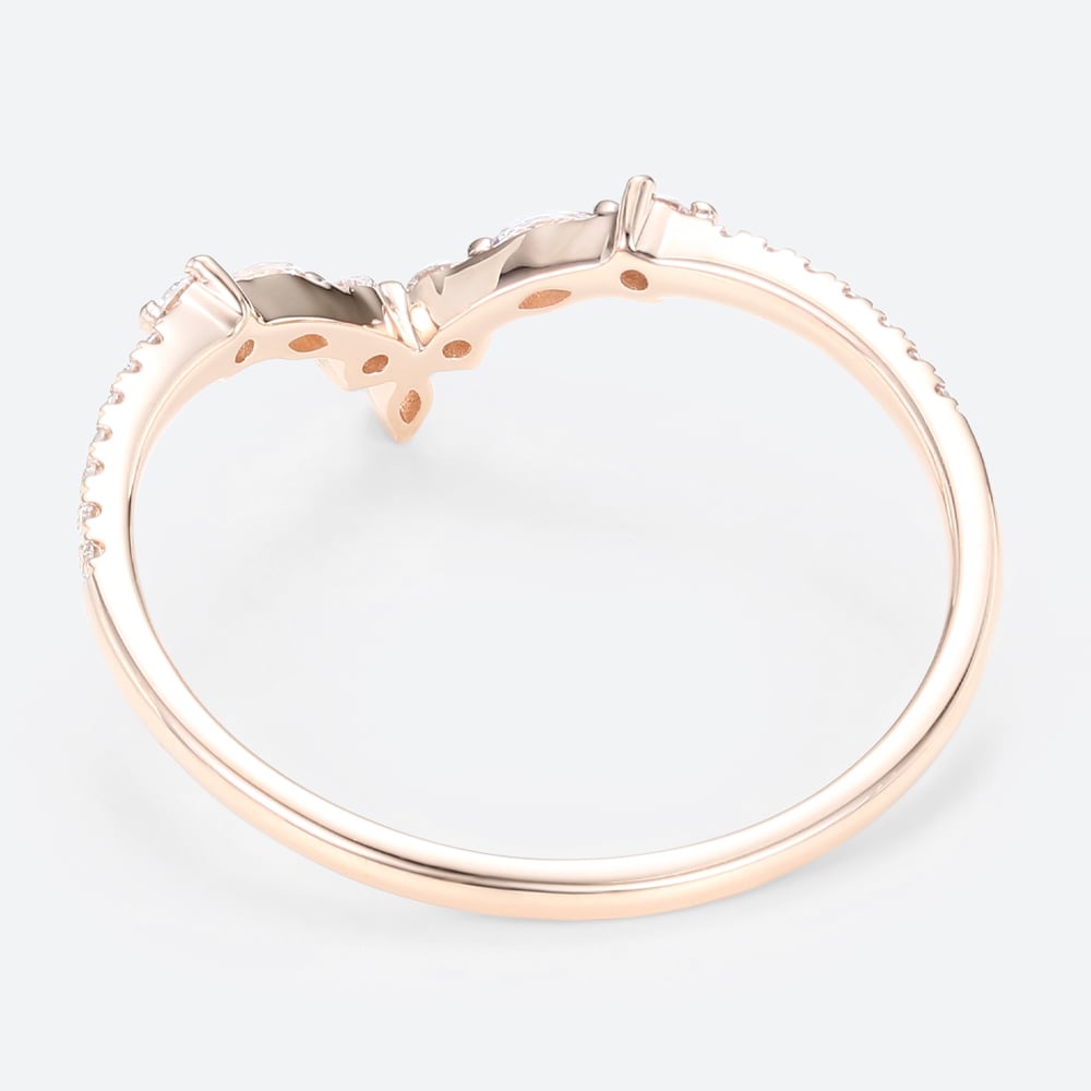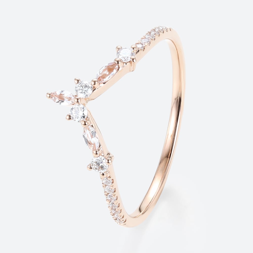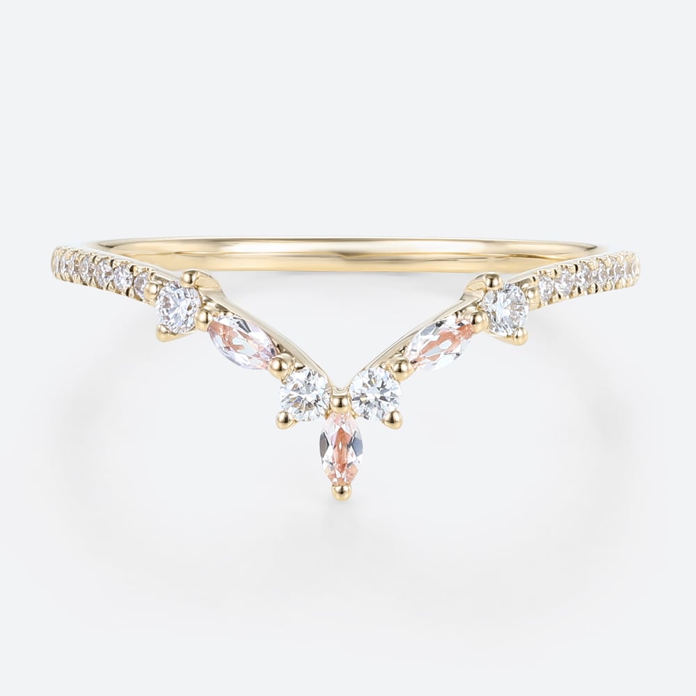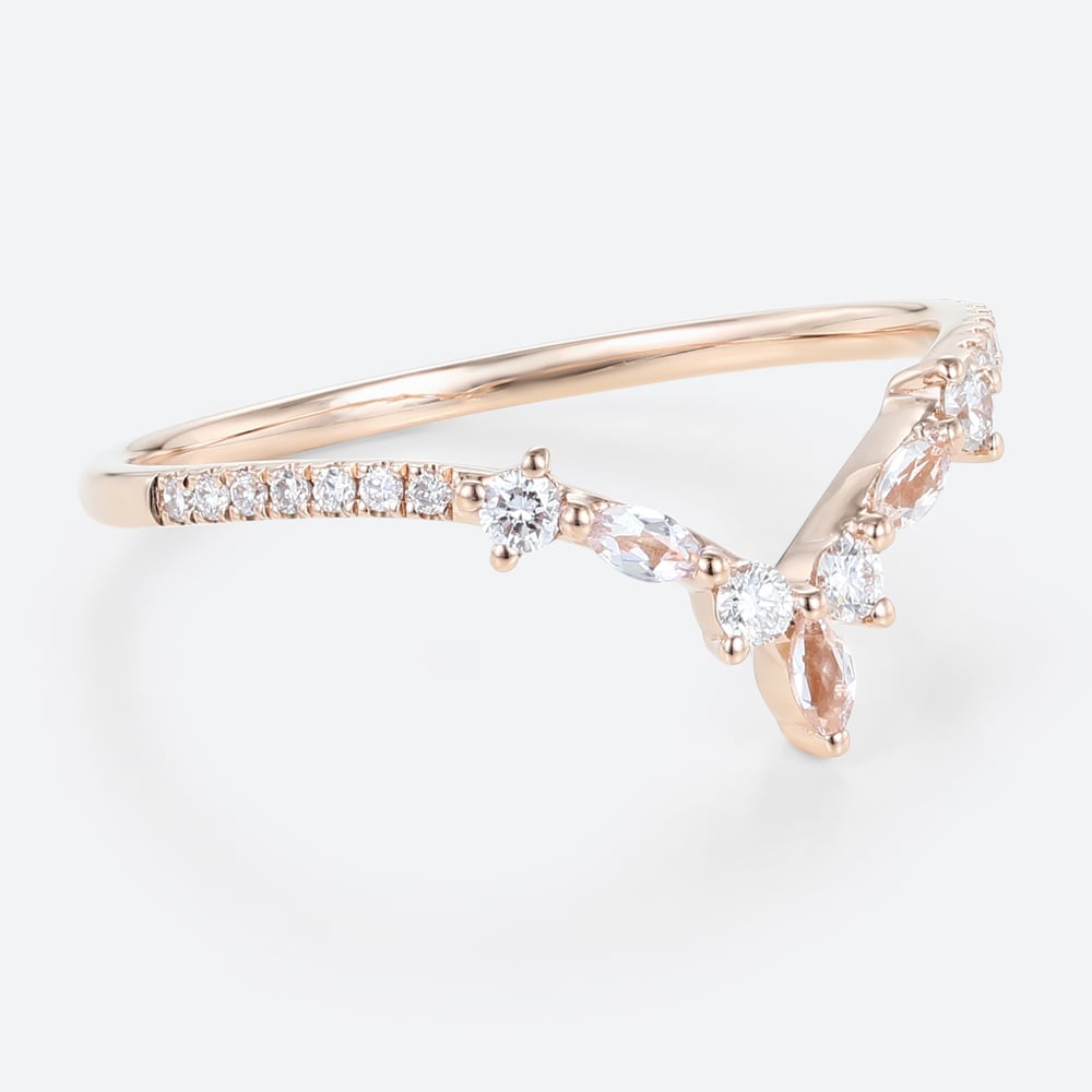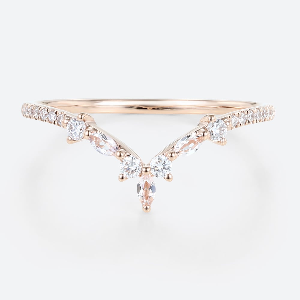 Unique Marquise Cut Morganite Curved Wedding Band Moissanite Wedding Band