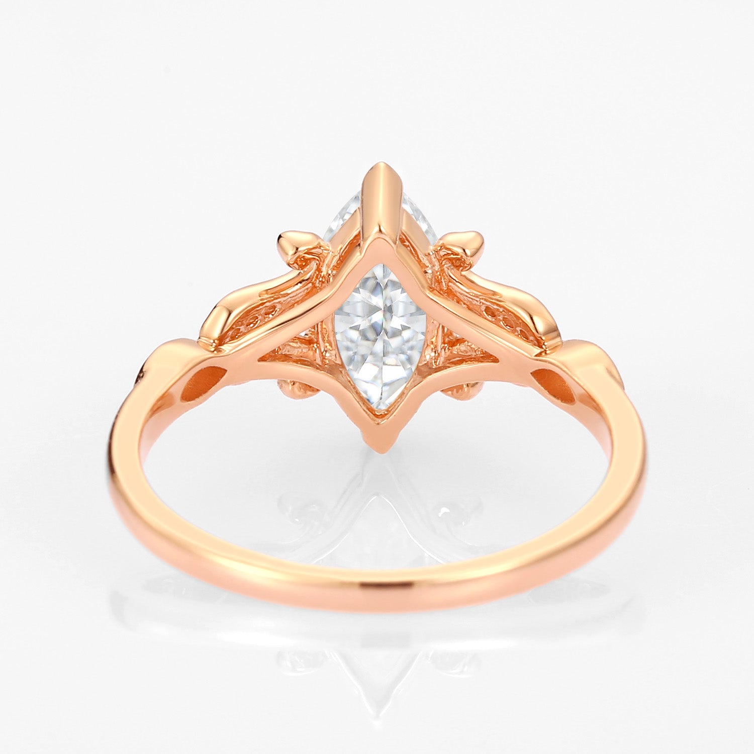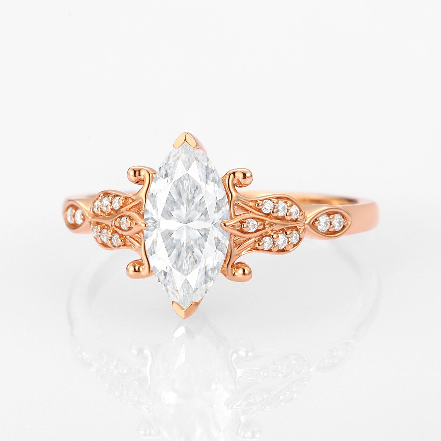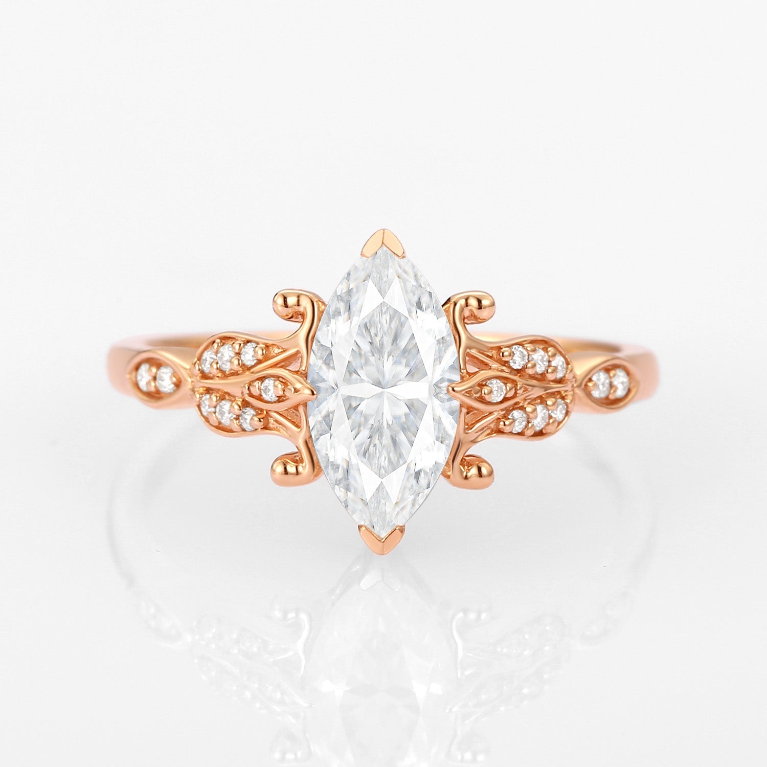 Unique floral engagement rings Marquise Moissanite Leafy Engagement Ring