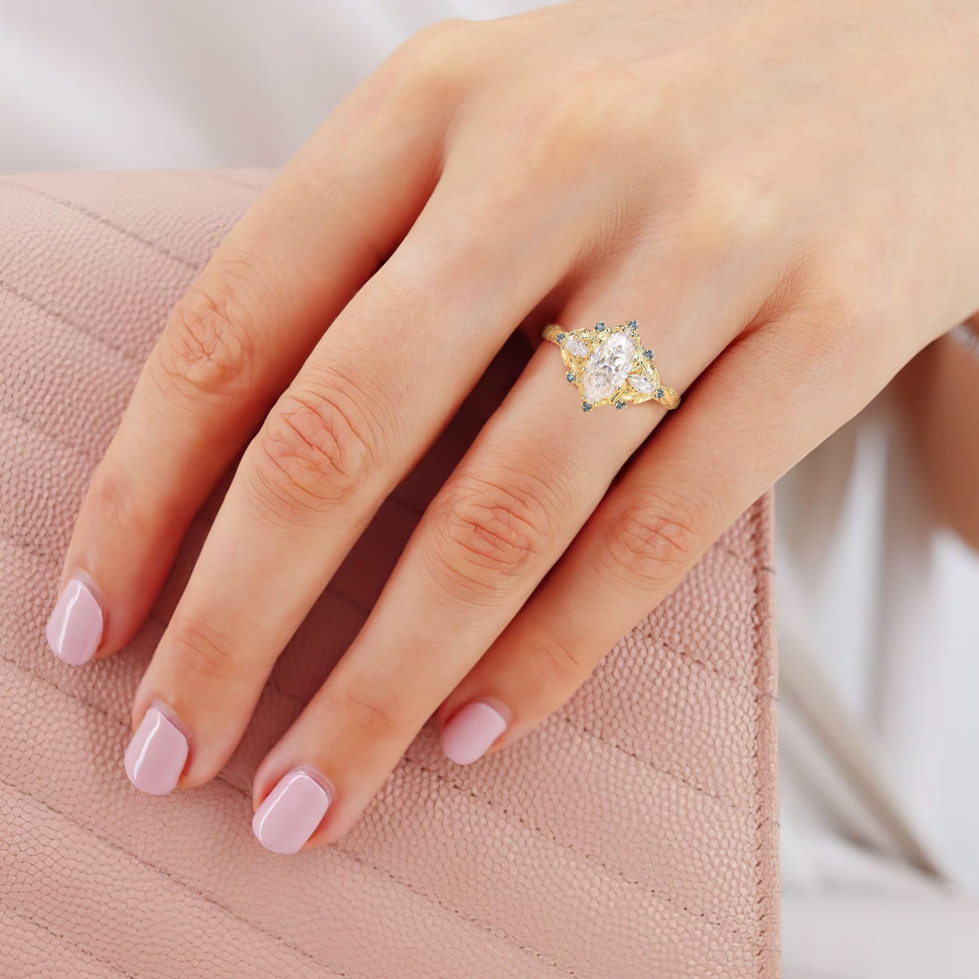 Unique floral engagement rings Marquise Moissanite Ring Art Deco Round Alexandrite Wedding Ring
