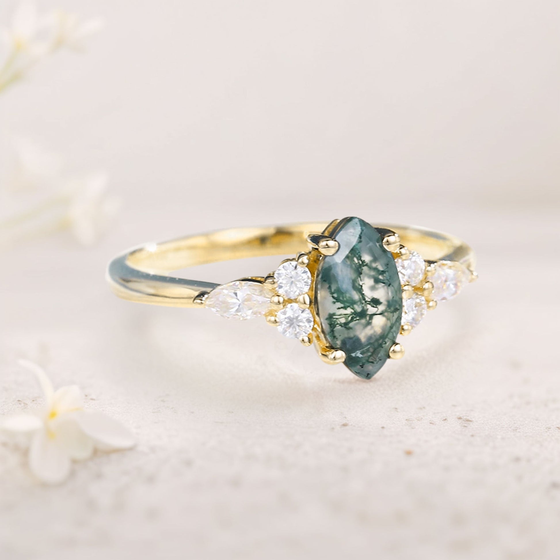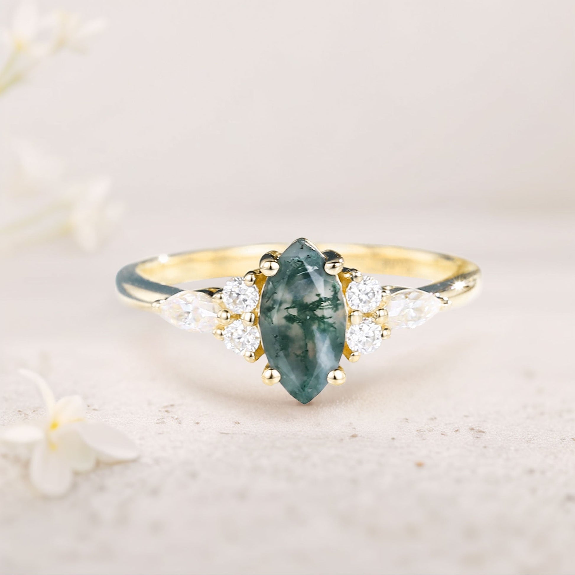 Unique Marquise Moss Agate Simple Engagement Ring