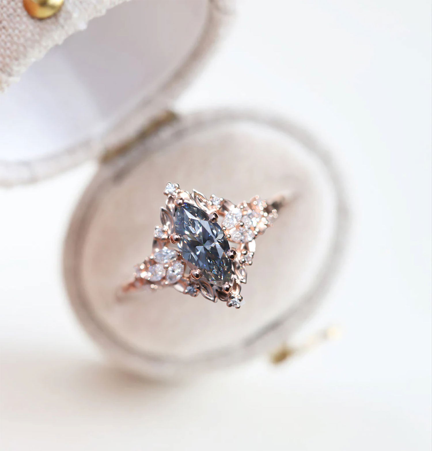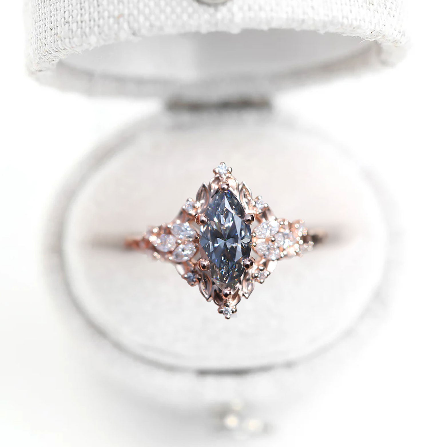 Unique Celeste Rose Starlight Marquise Grey Moissanite Ring