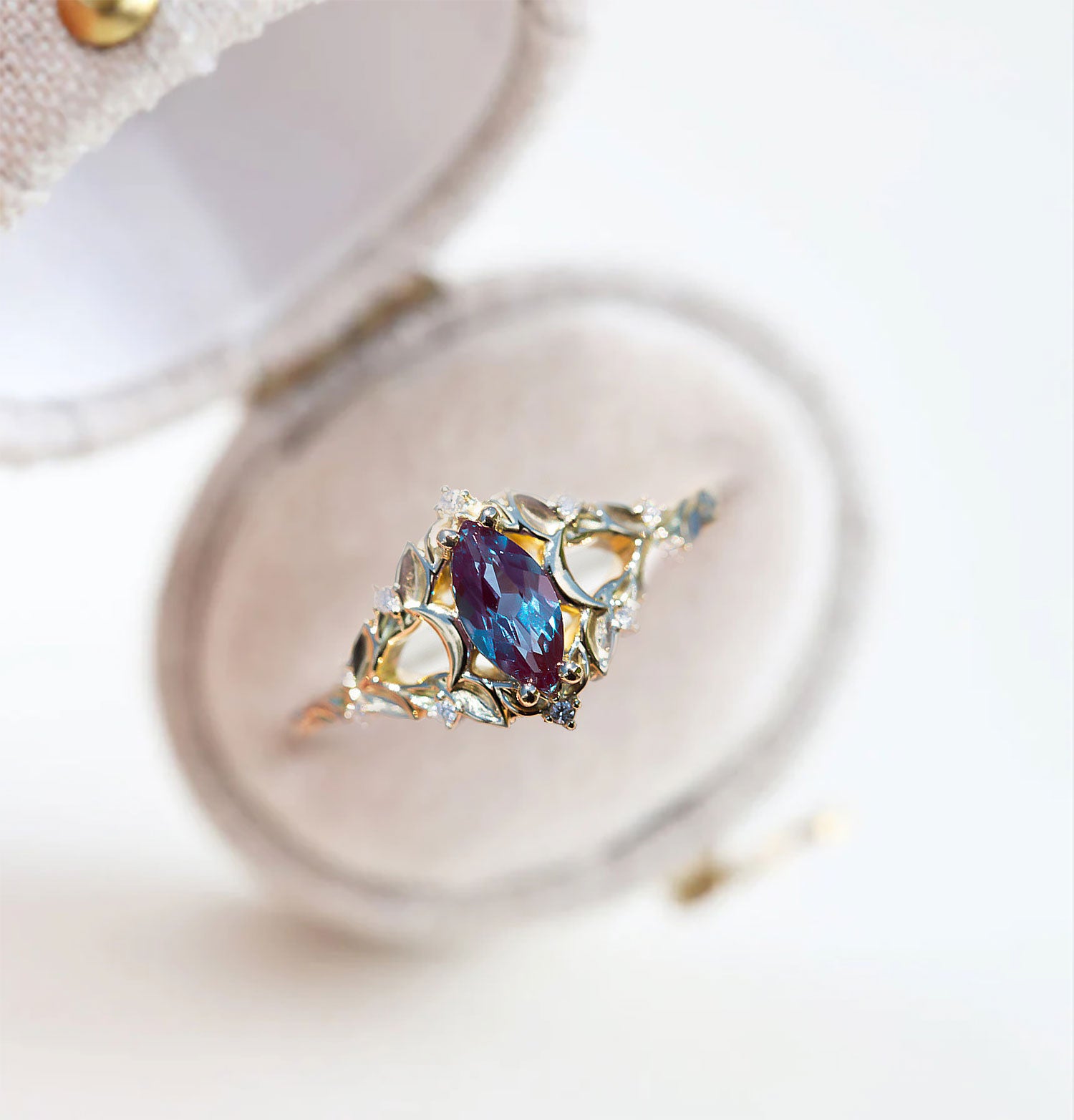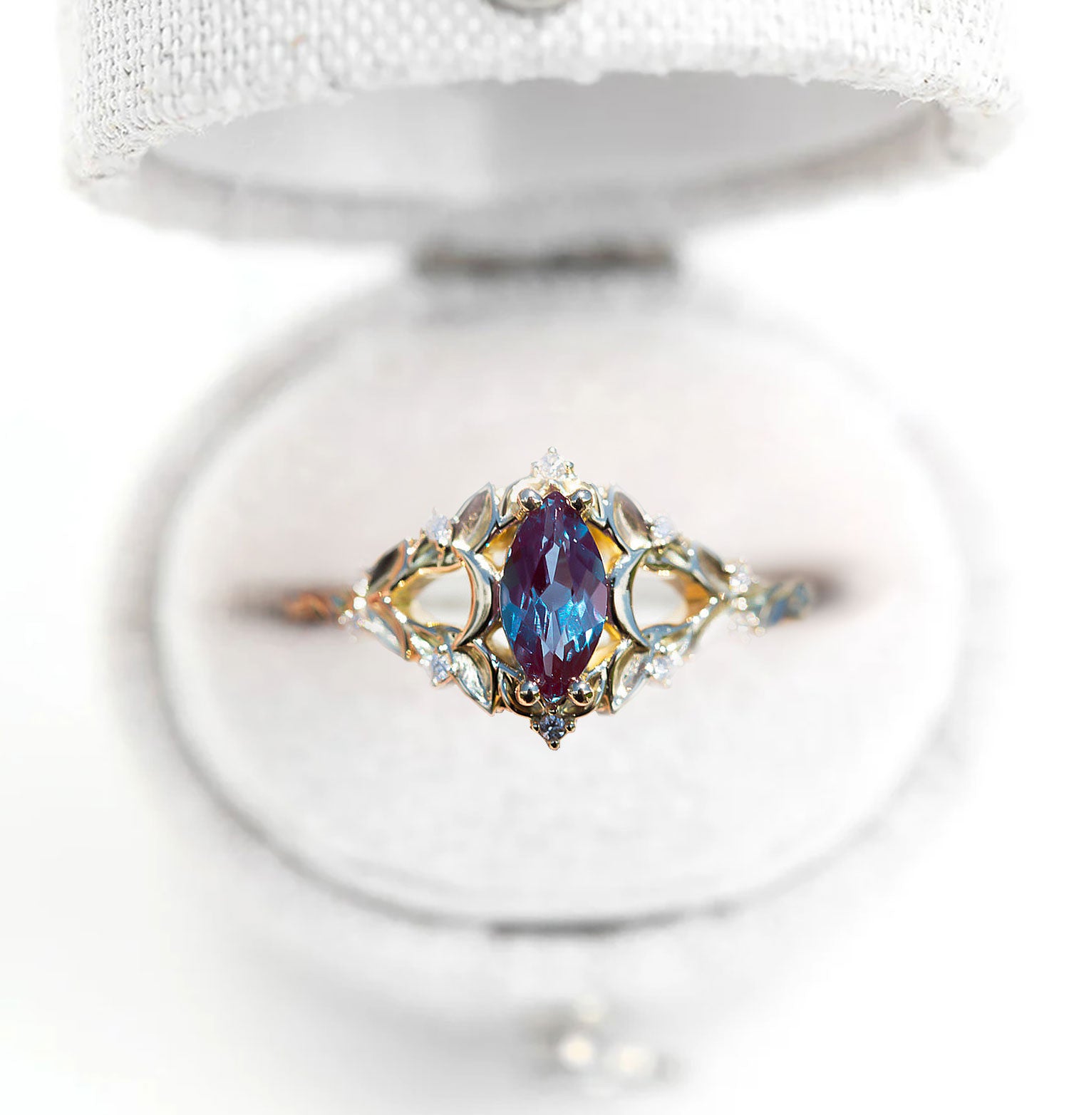 Unique Briar Moon Marquise Lab Alexandrite Ring