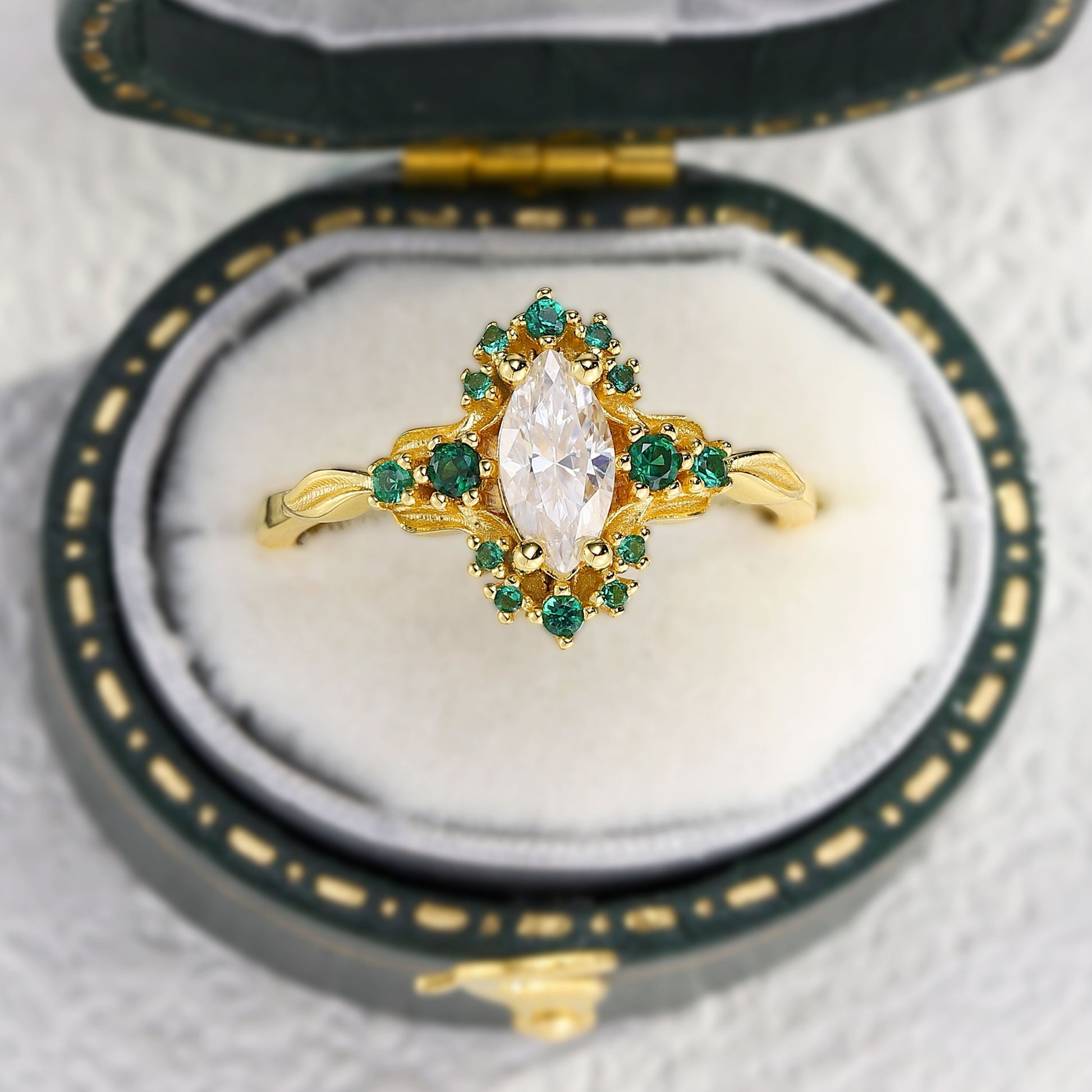 Unique Astraea Half Halo Marquise Moissanite Ring