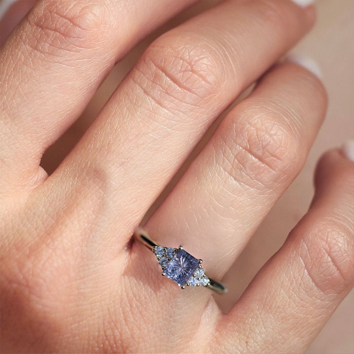 Unique Modern Cluster Emerald cut Purple Lab Sapphire Ring