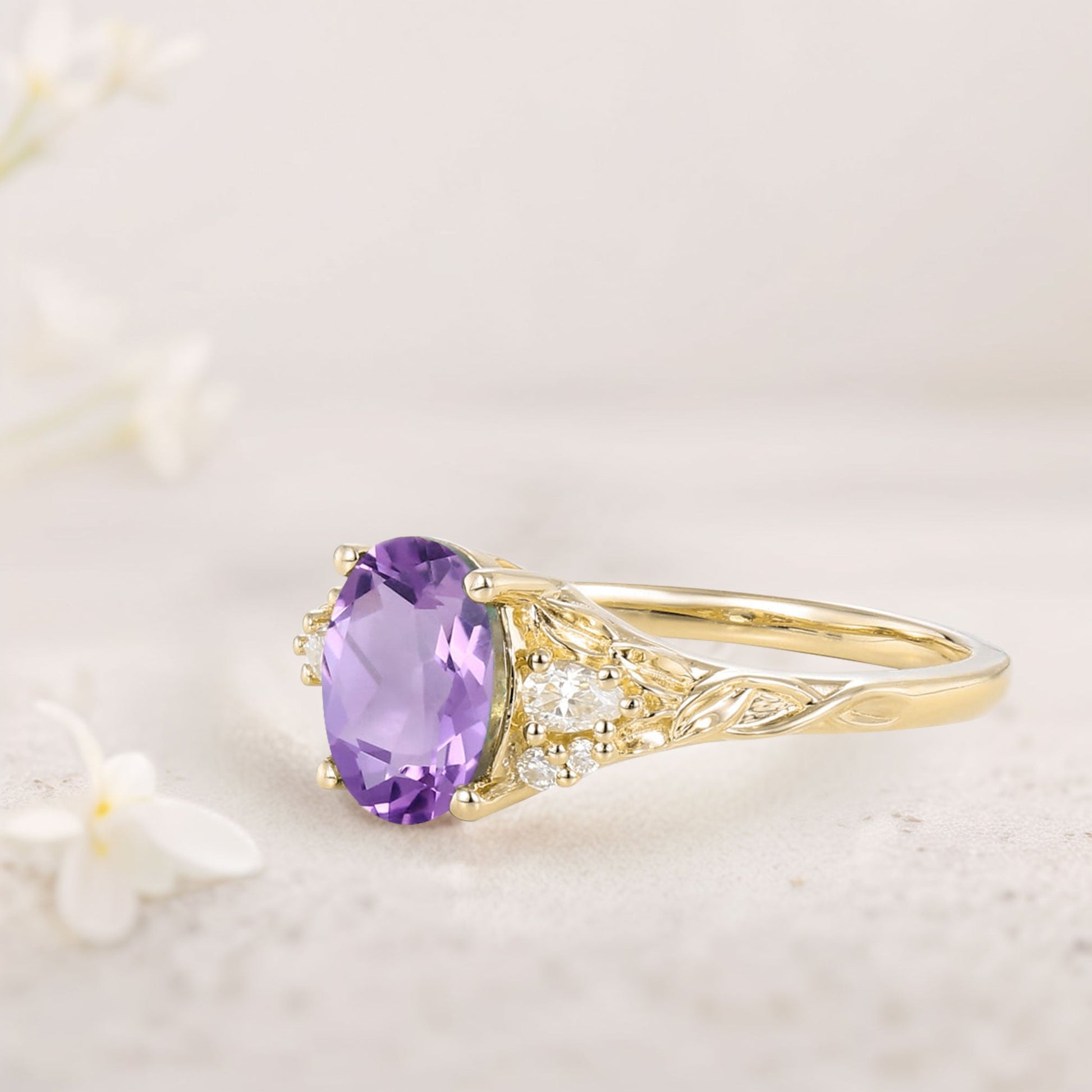 Unique Oval Amethyst and Moissanite Wedding Ring
