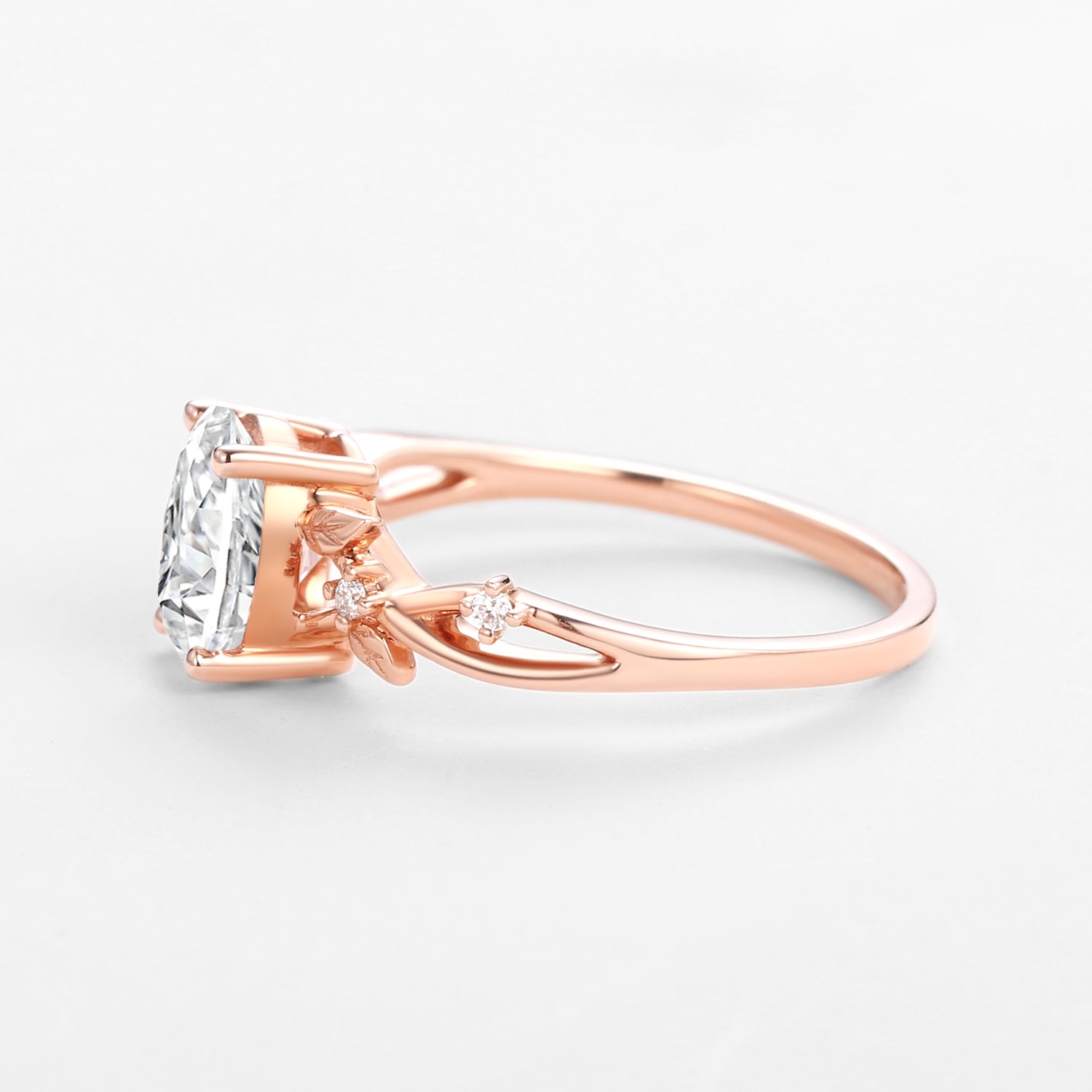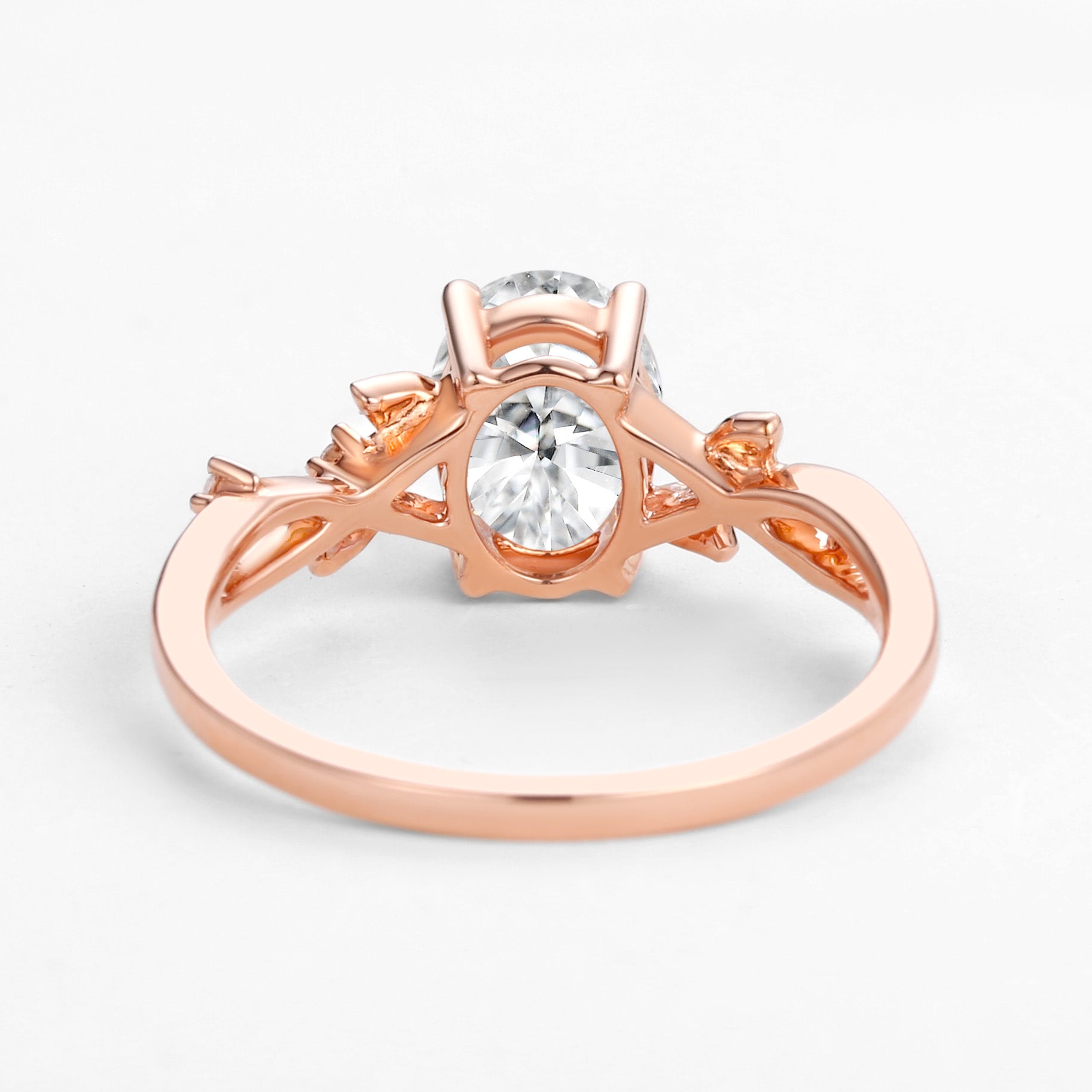 Unique floral engagement rings Oval Moissanite Leafy Engagement Ring