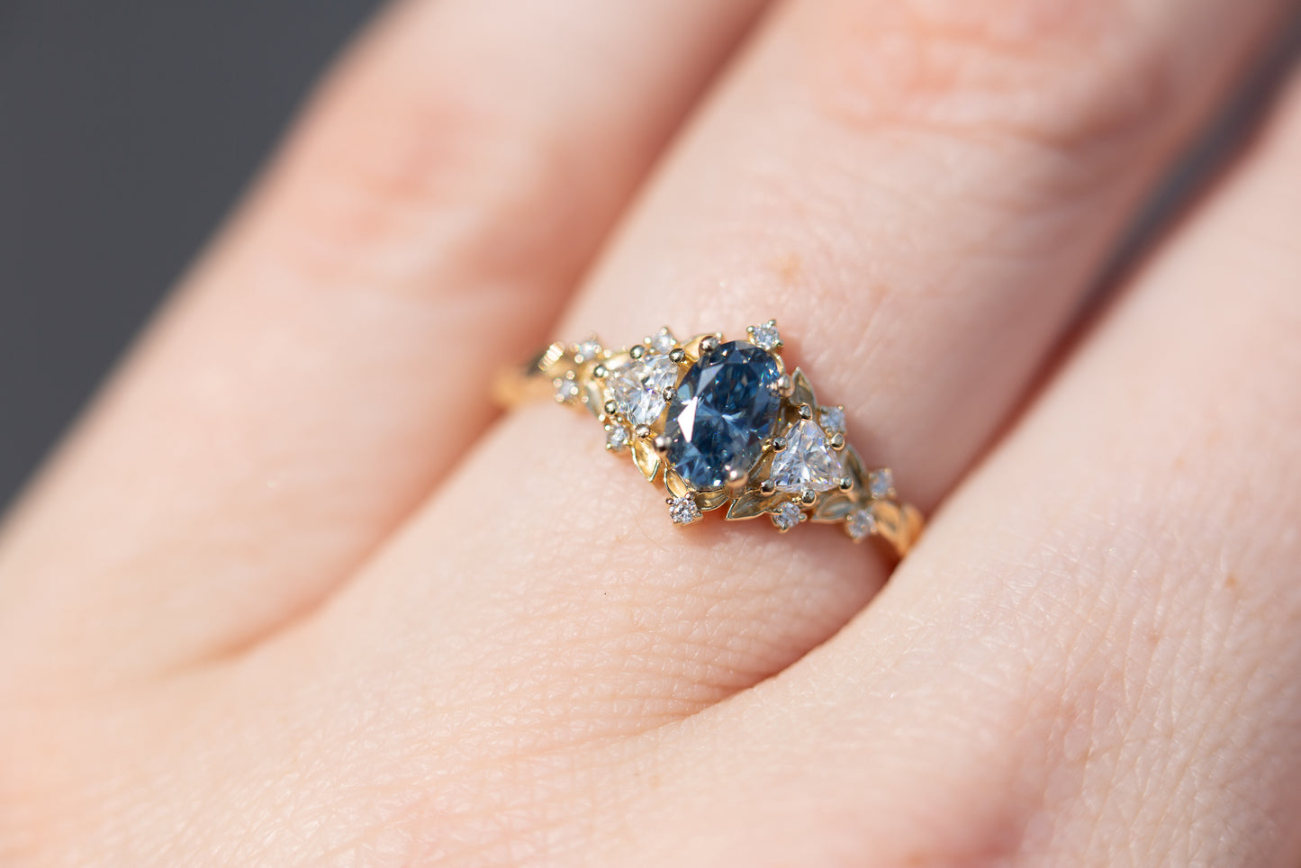 Unique Celeste Rose Oval Grey Moissanite Ring