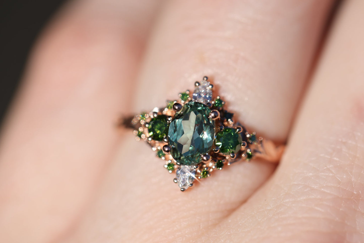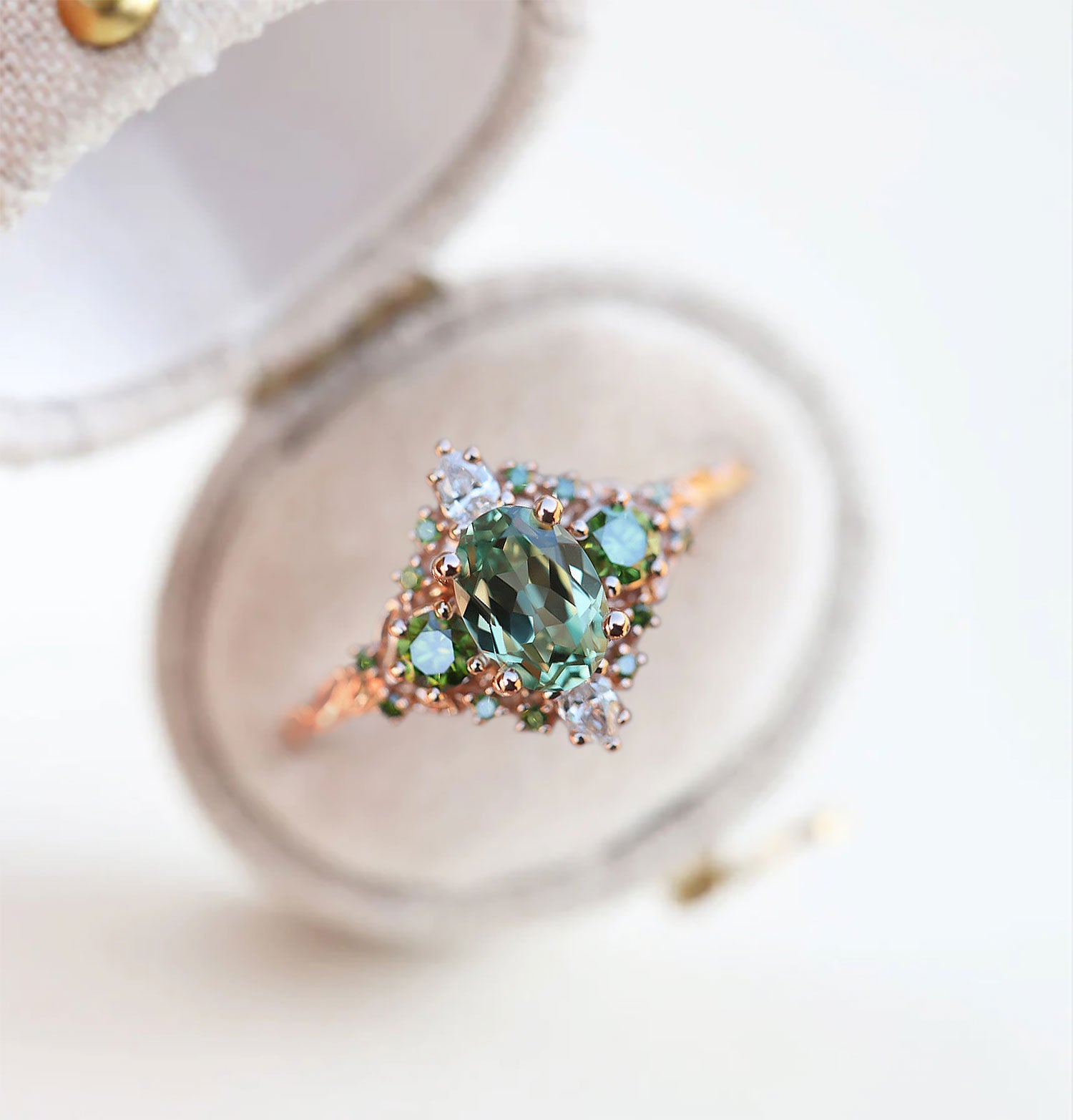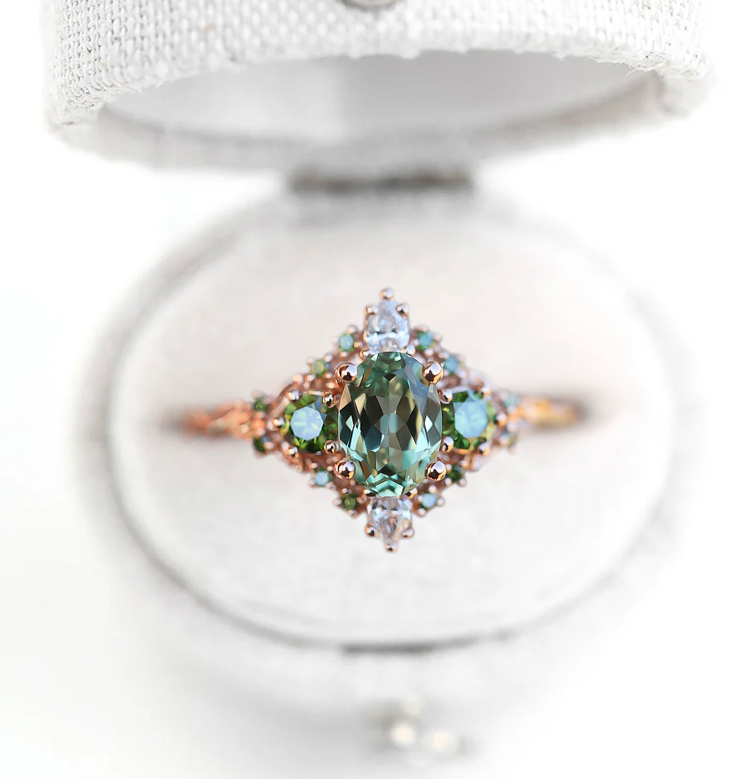Unique Enchanted Briar Oval Lab Green Sapphire Ring