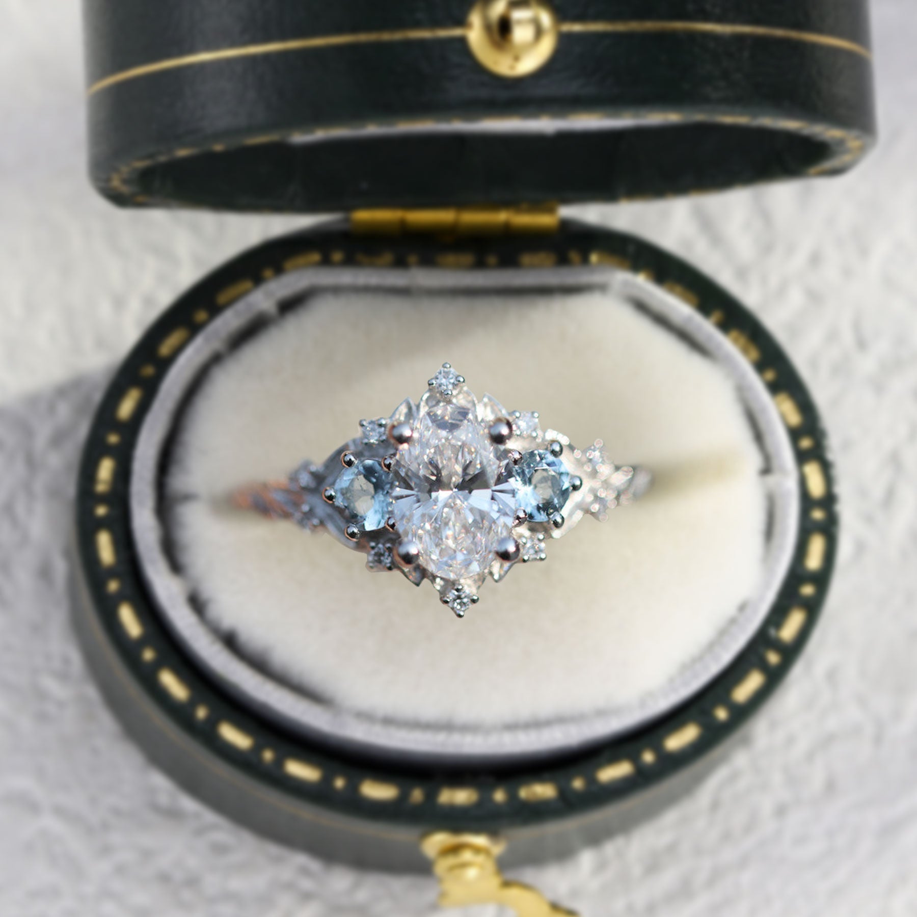 • Side stones: Lab Aquamarine