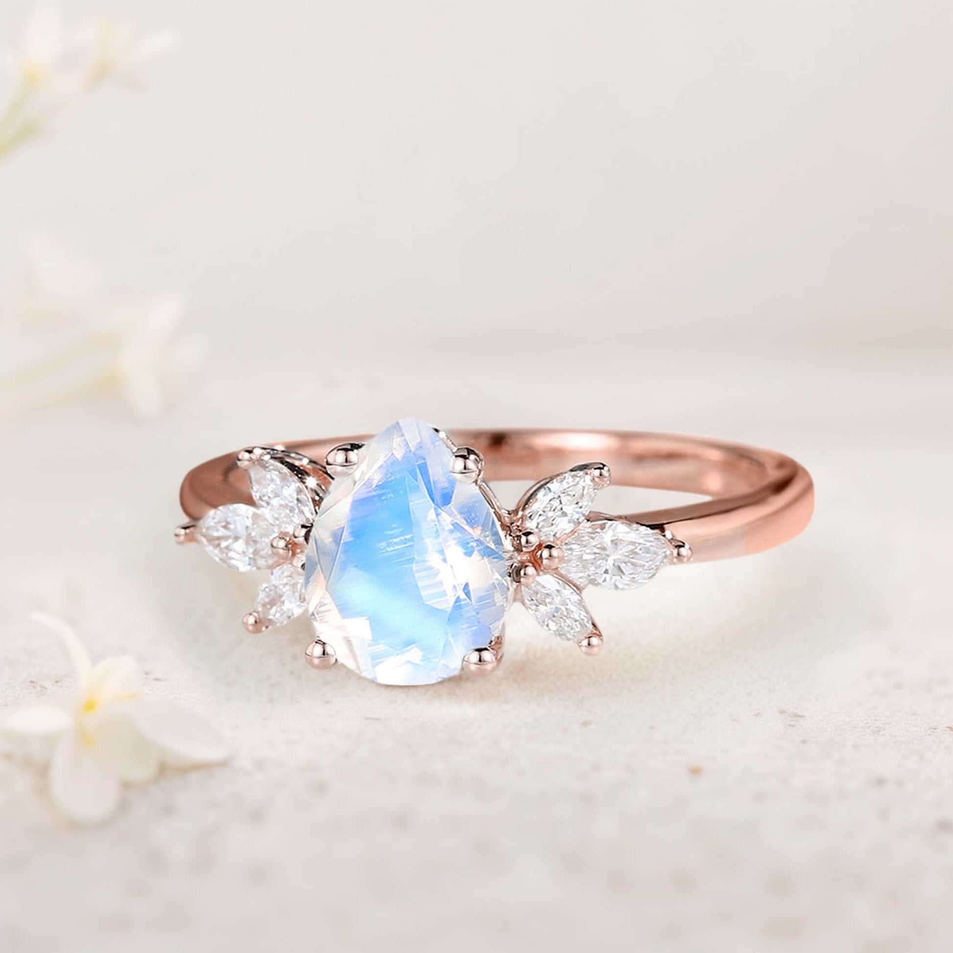 Unique Pear Lab Moonstone Engagement Ring Simple Cluster Bridal Ring