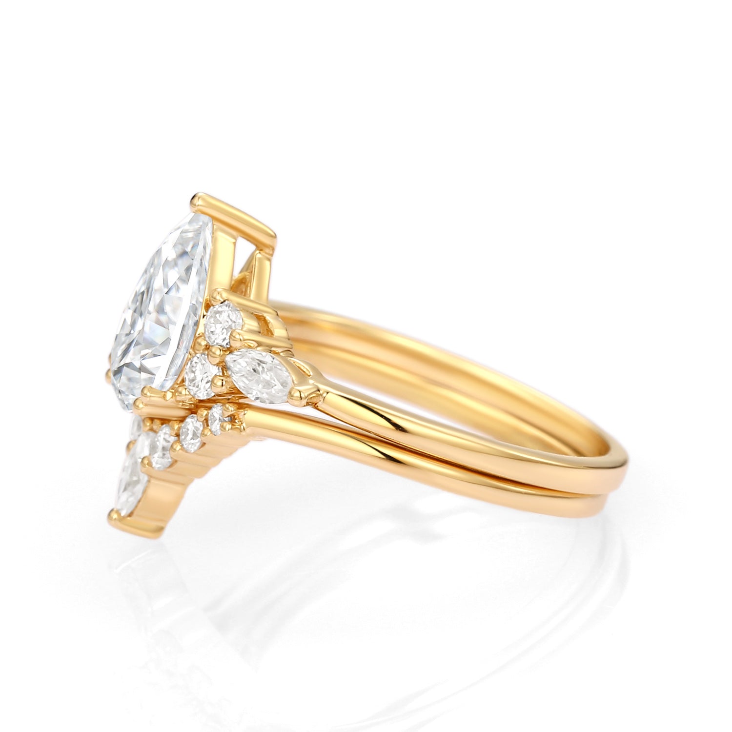 Unique floral engagement rings Pear Moissanite Bridal Ring Cluster Engagement Ring Set