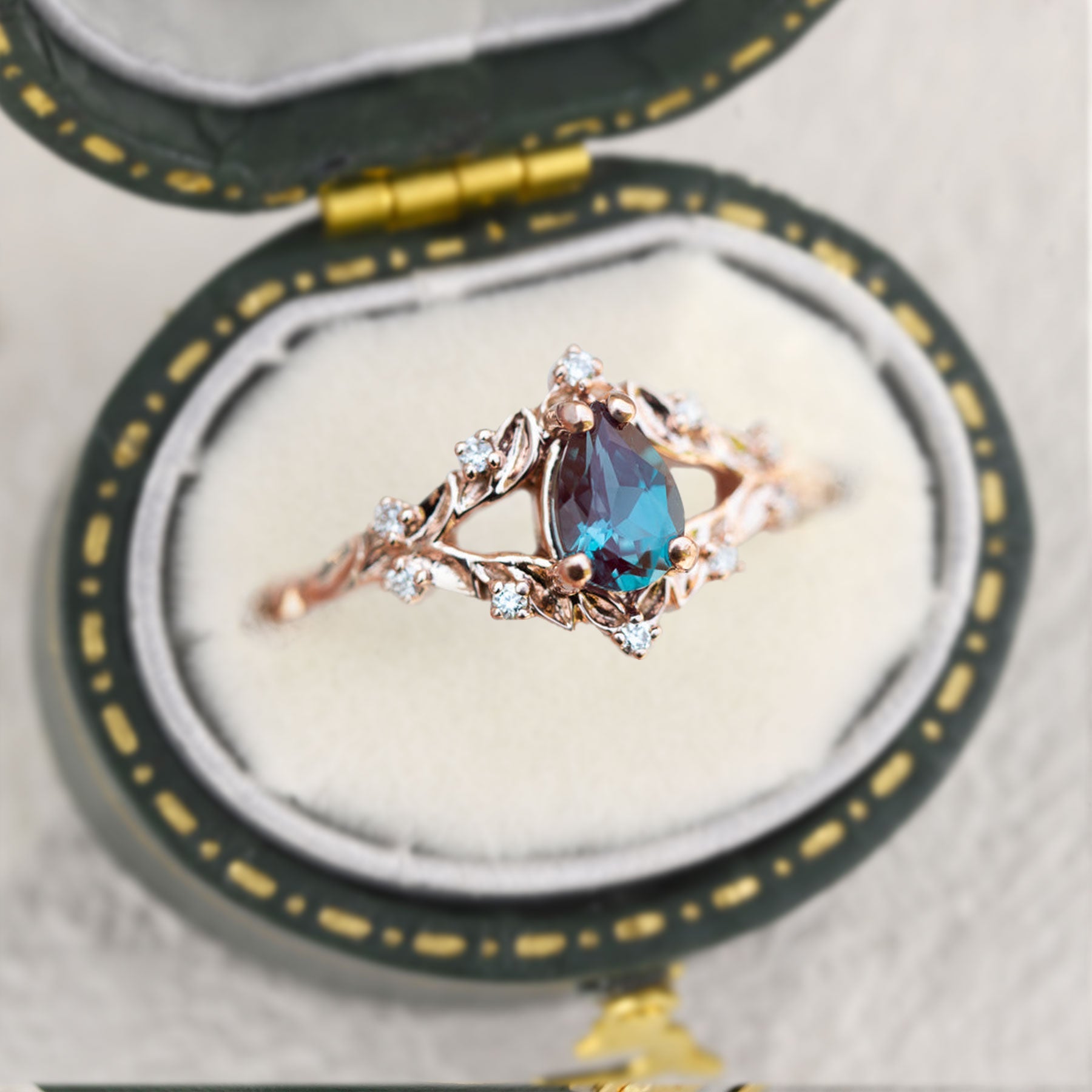 Unique Briar Rose Pear Lab Alexandrite Ring