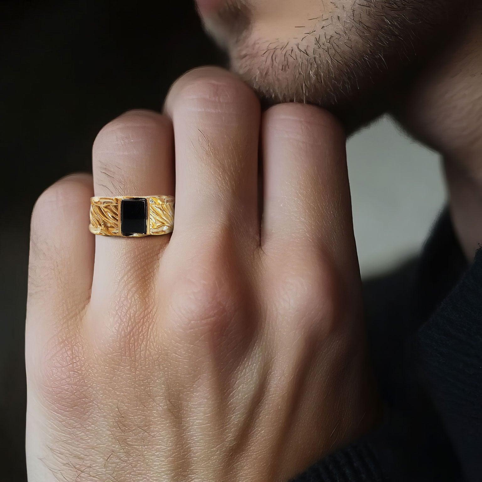 Unique Byzantine Rectangle Lab Black Onyx Ring Band For Men