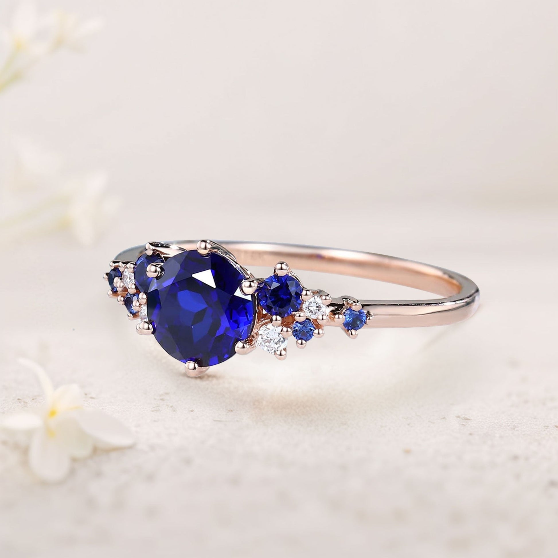 Unique Round Lab Sapphire Engagement Rings Cluster Promise Ring