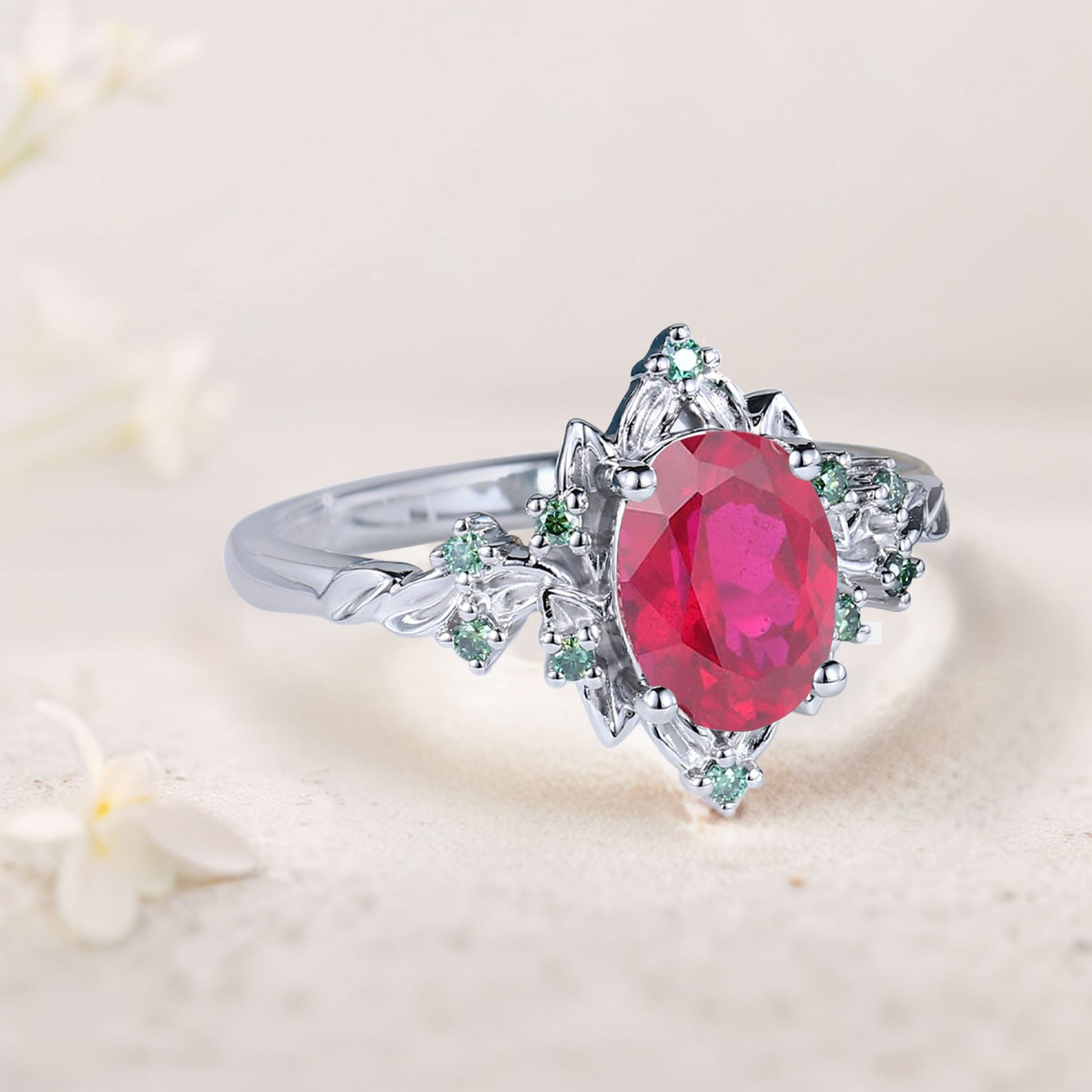 Vintage Briar Rose Oval Ruby Engagement Ring Olive Leaves Ring