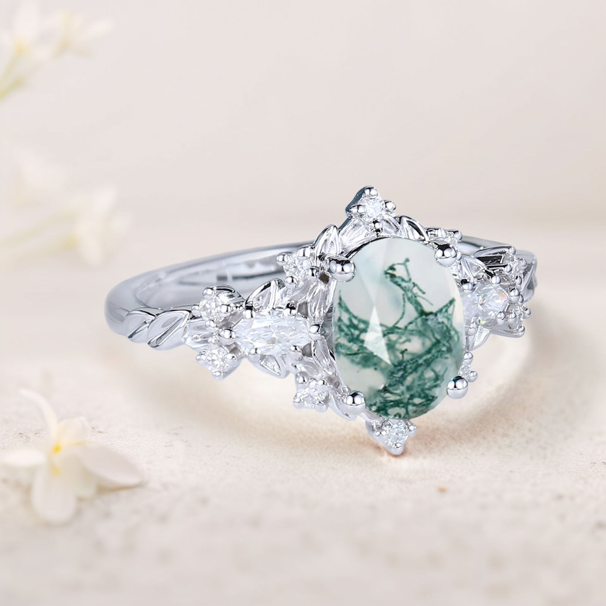 • Center stone: Moss Agate