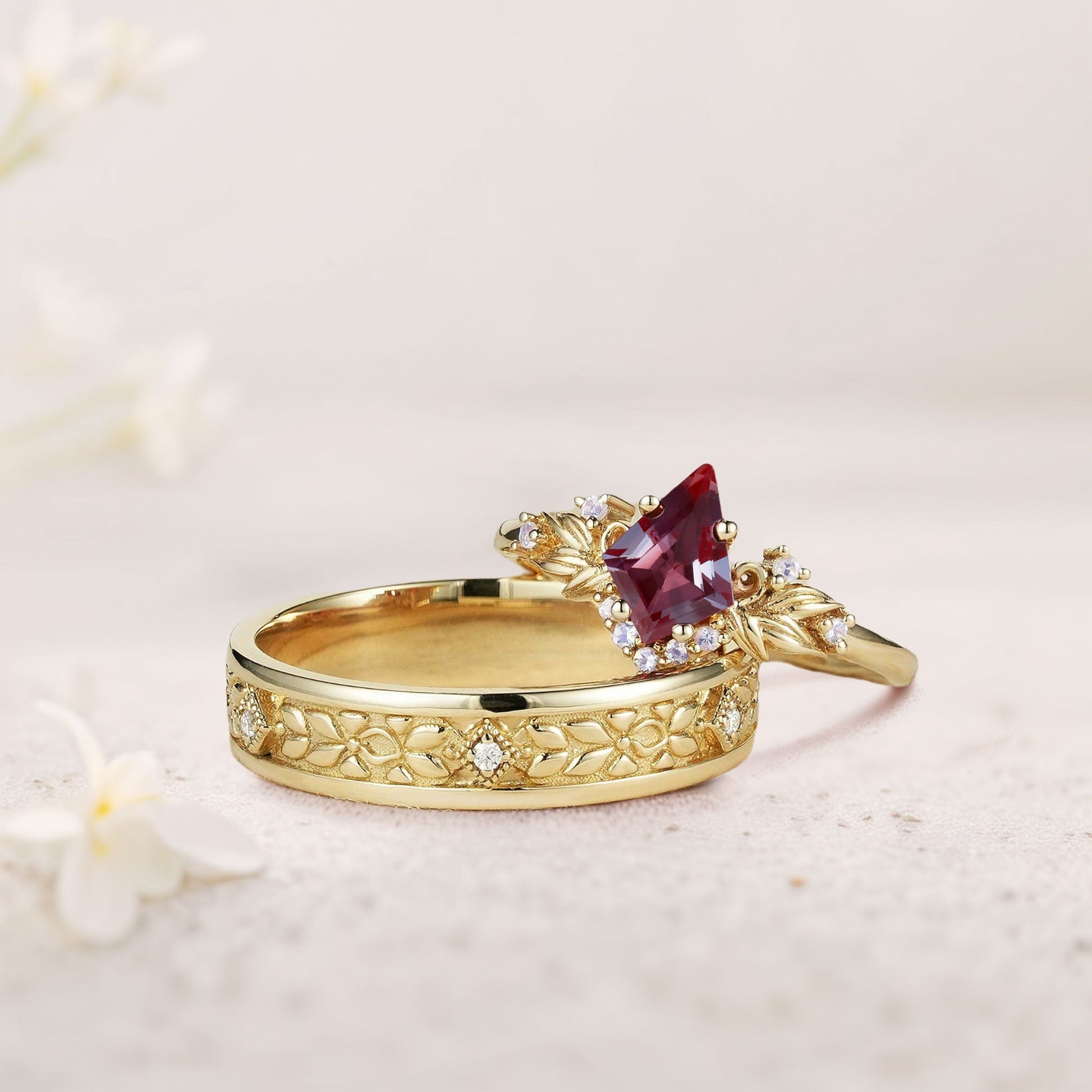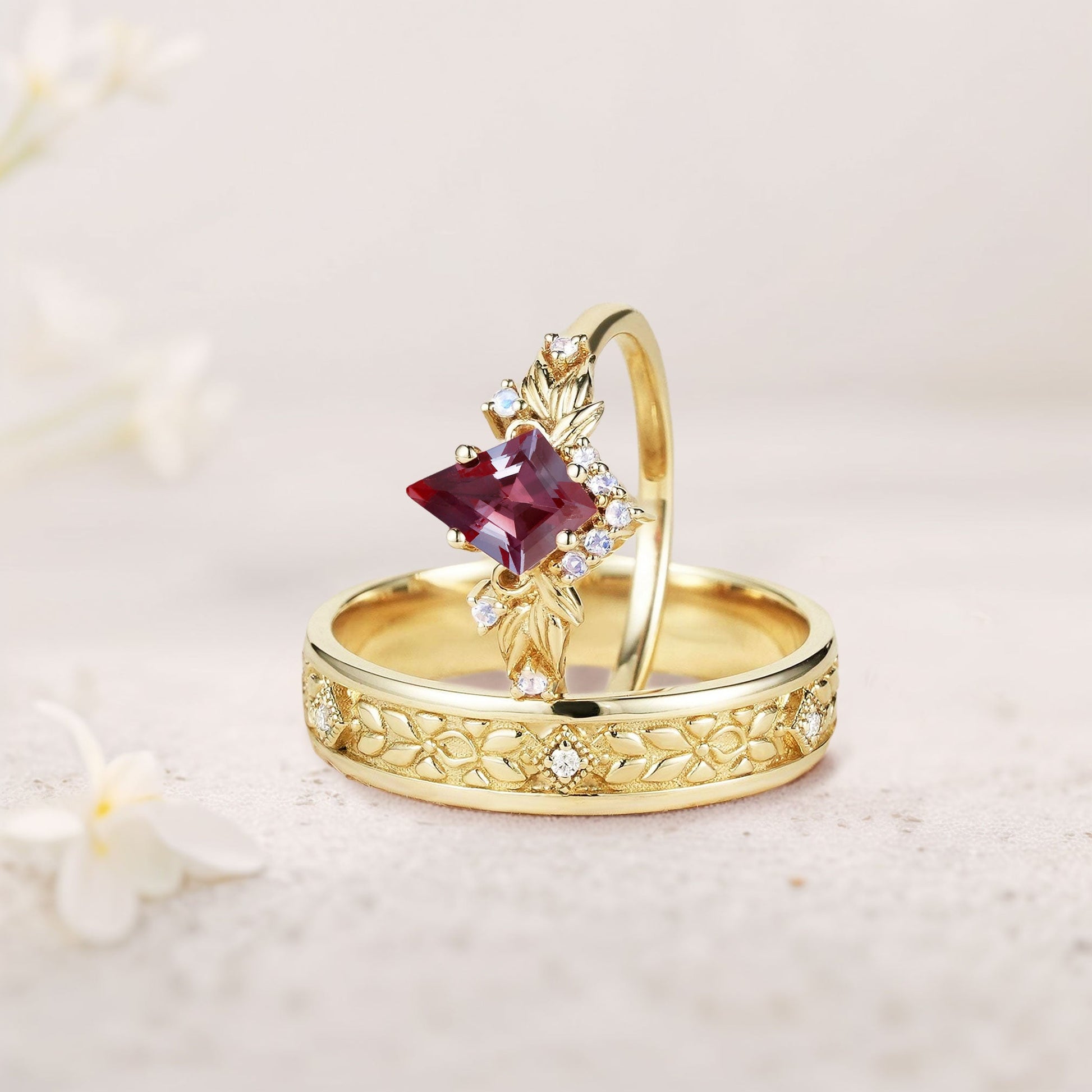Vintage Kite Lab Alexandrite Promise Ring Engagement Ring Set for Couples