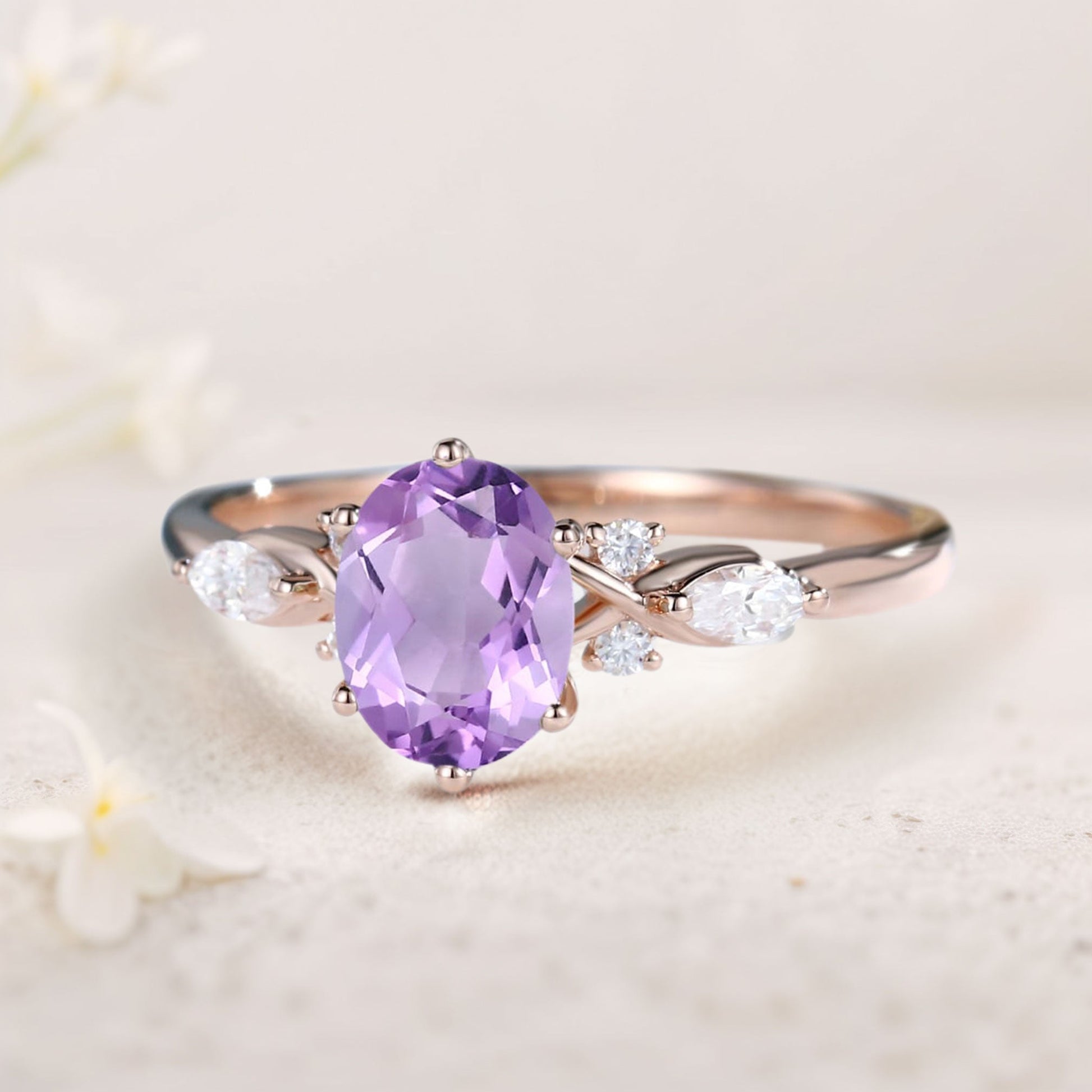 Vintage Oval Amethyst and Moissanite Engagement Ring