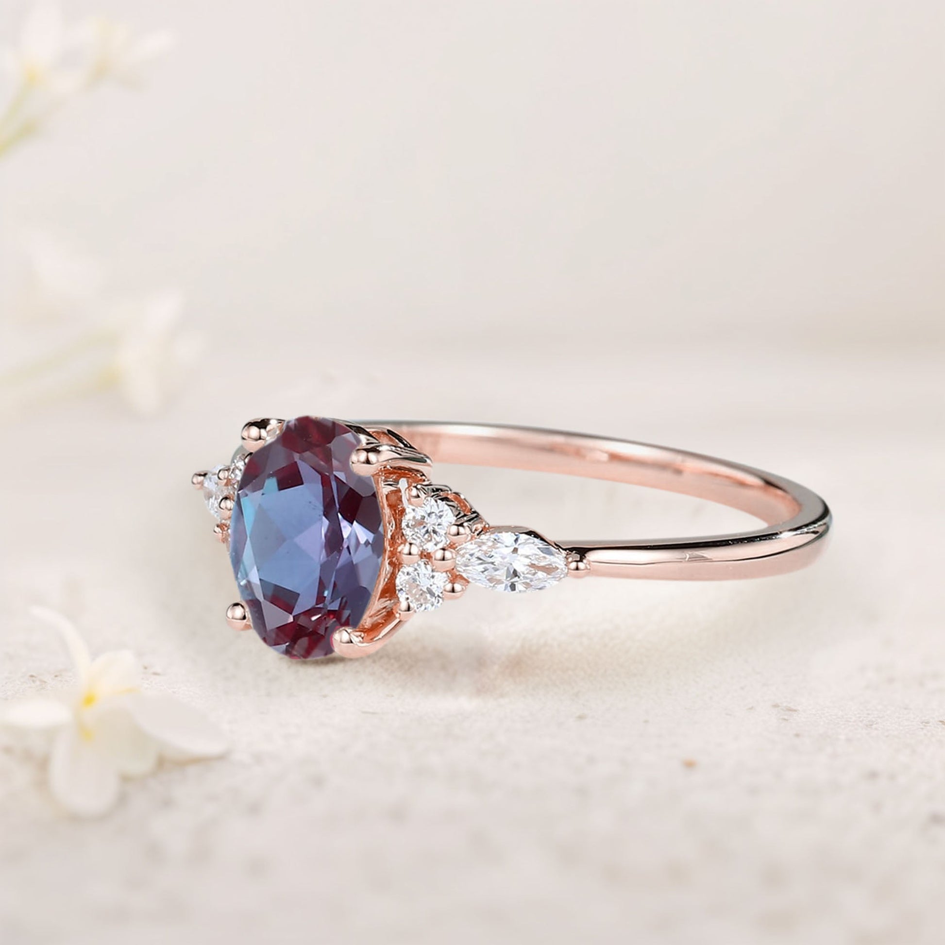 Vintage Oval Lab Alexandrite Cluster Engagement Ring