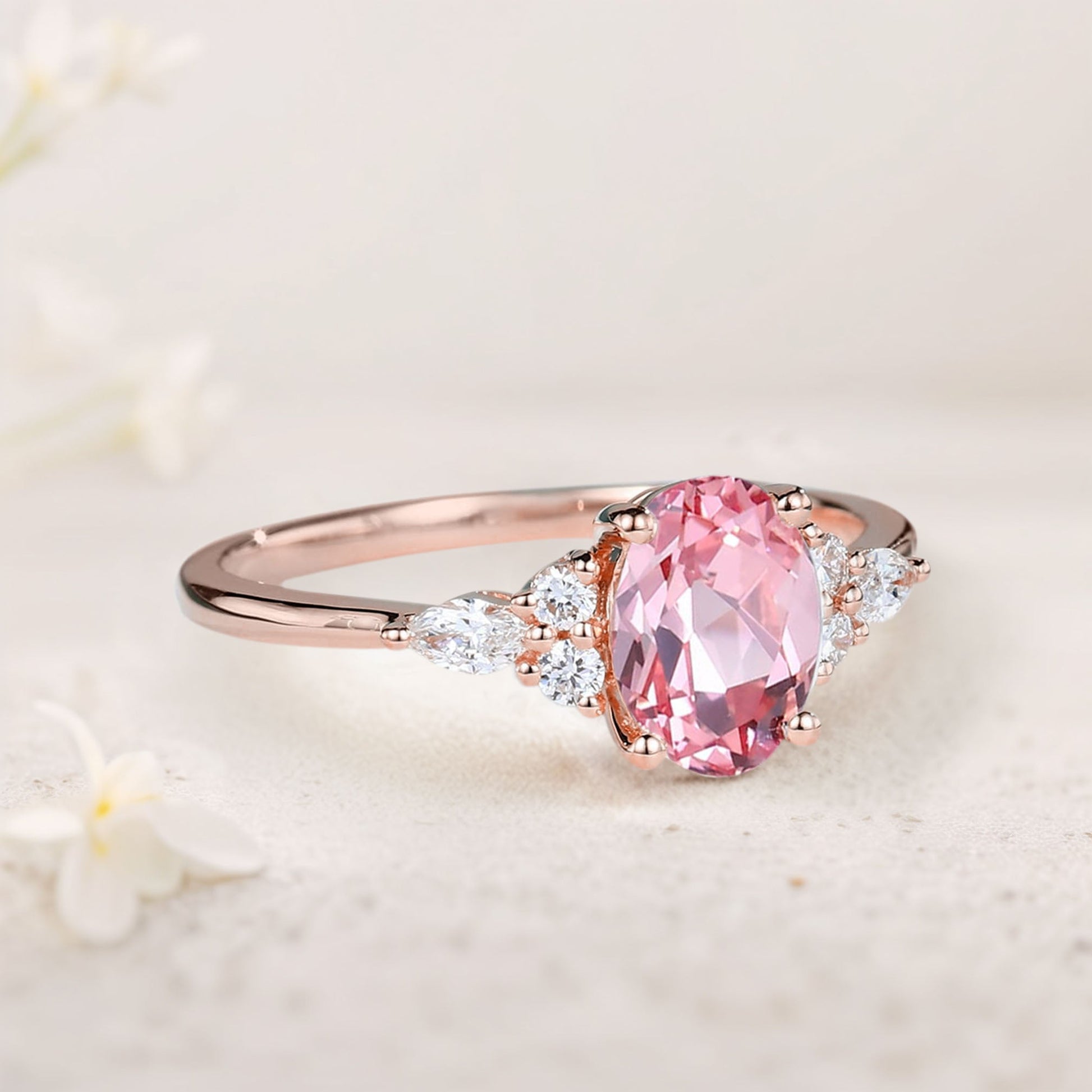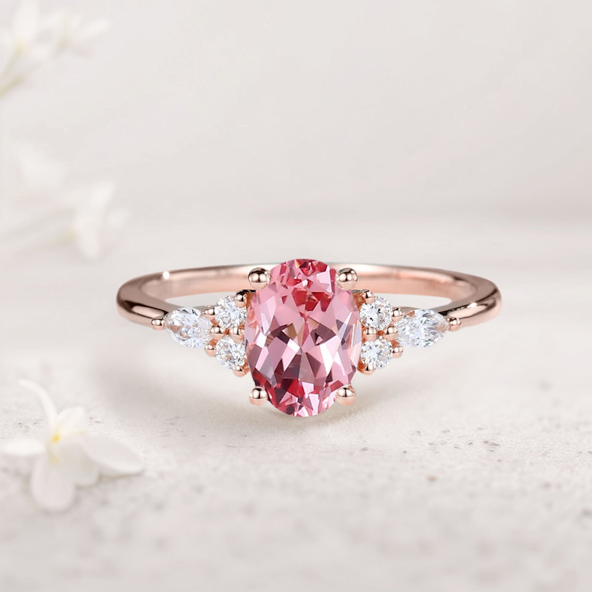 Vintage Oval Lab Padparadscha Cluster Engagement Ring