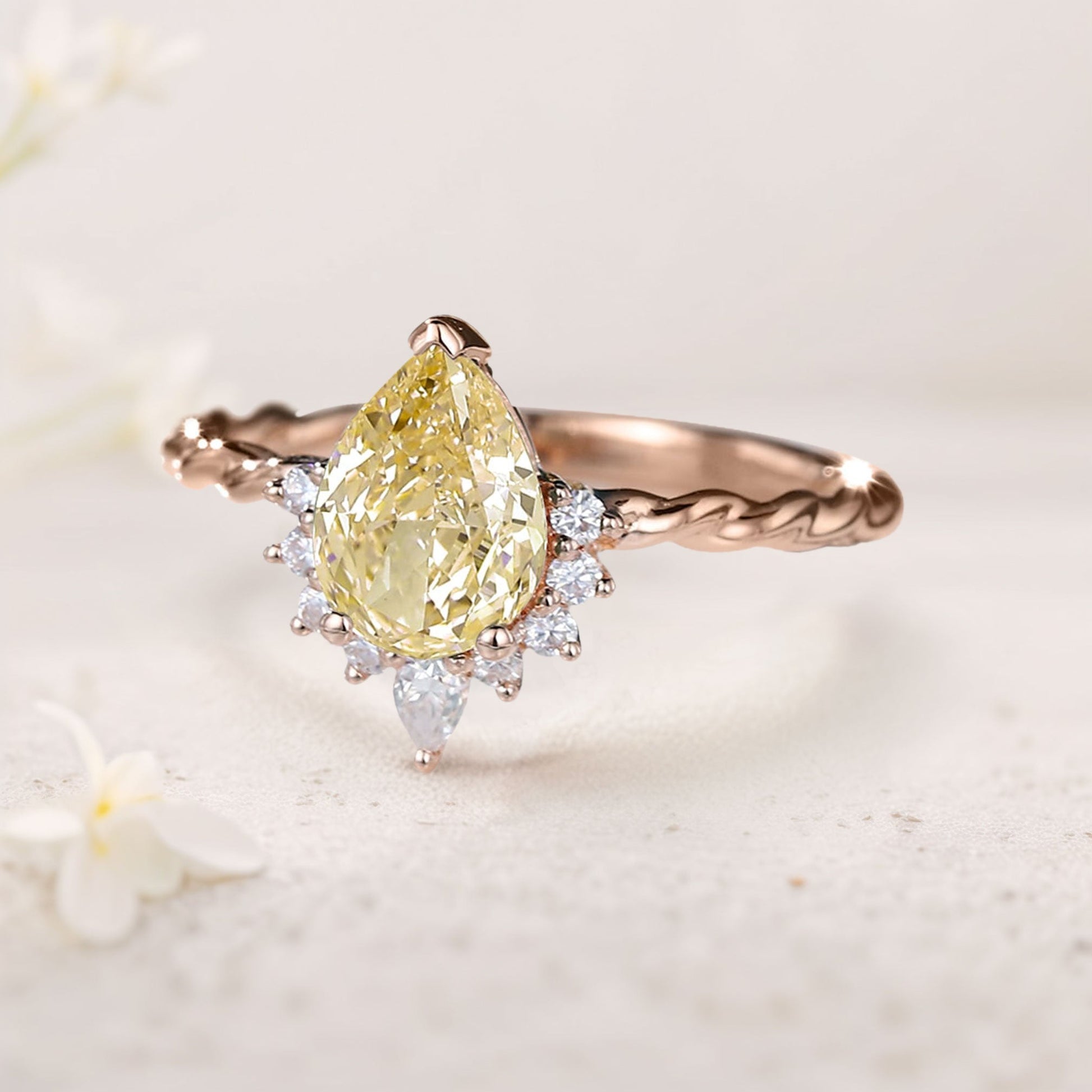 Vintage Pear Citrine Twisted Women’s Wedding Ring