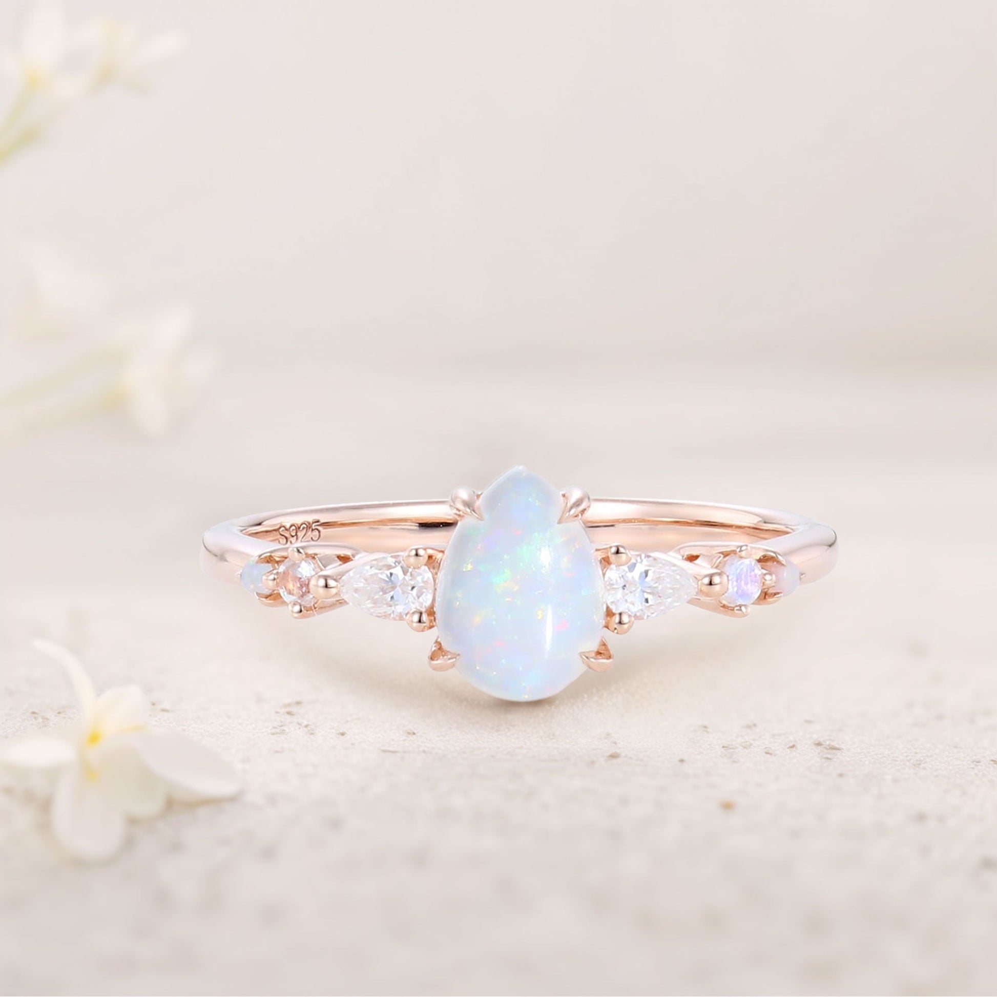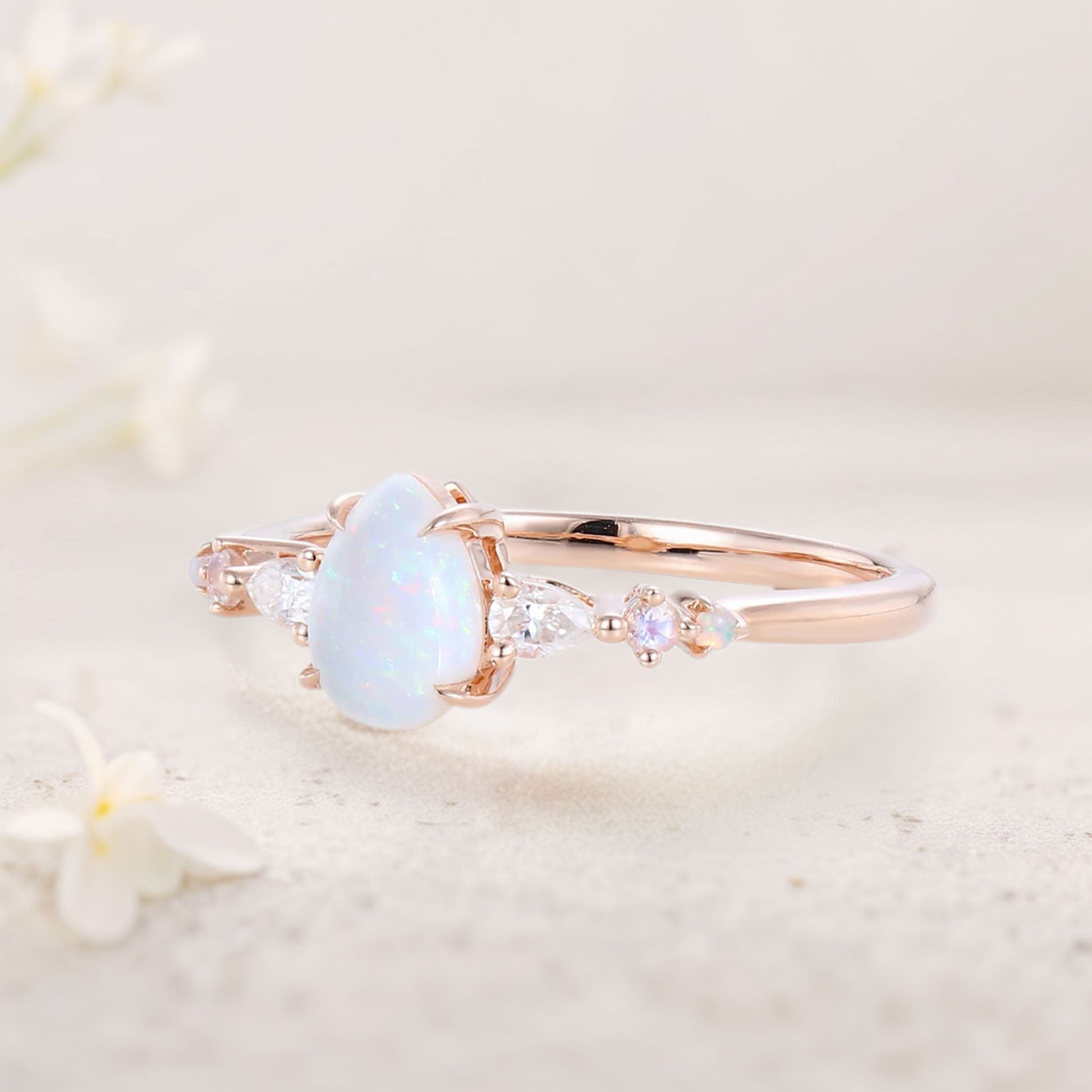Vintage Pear Lab Opal and Moissanite Engagement Ring