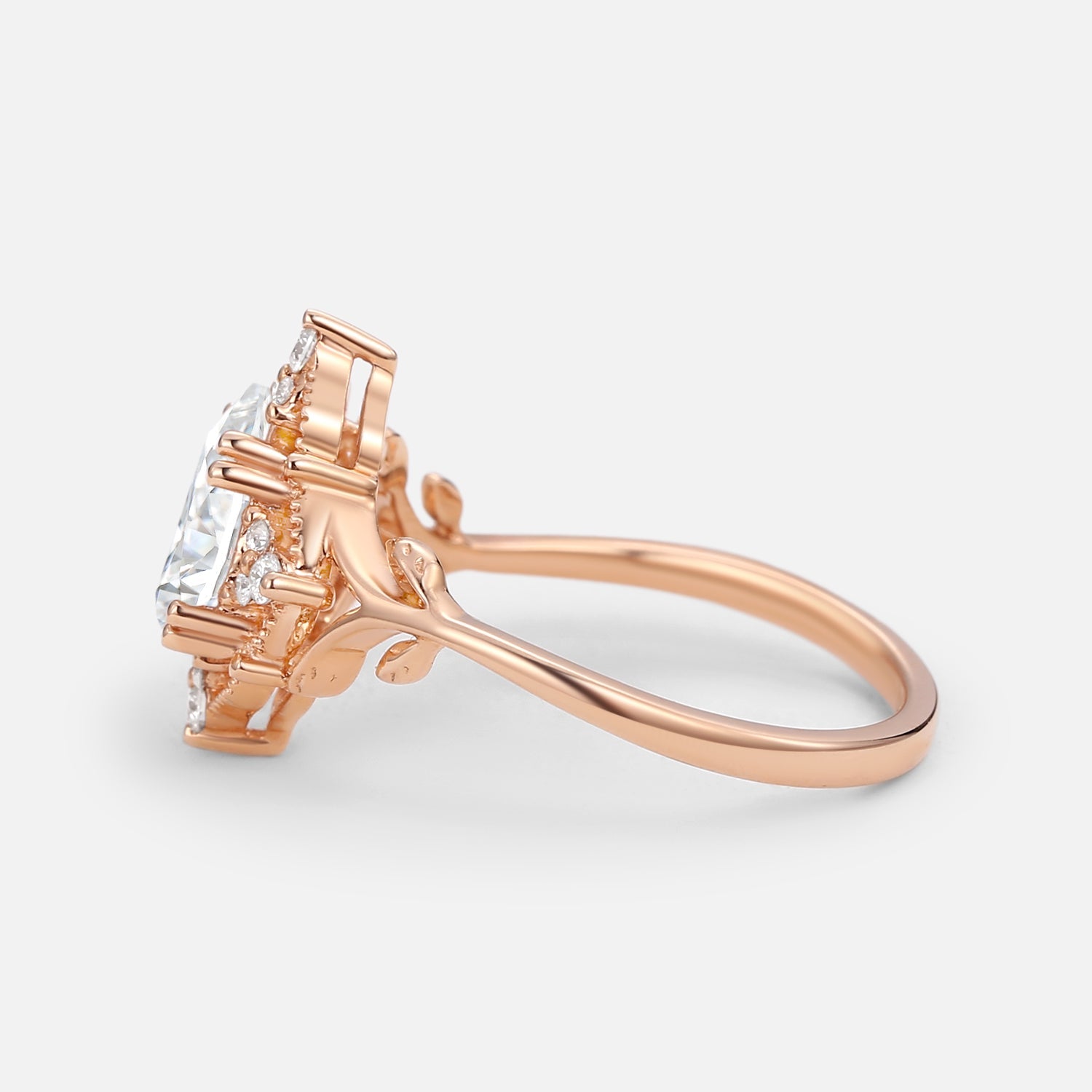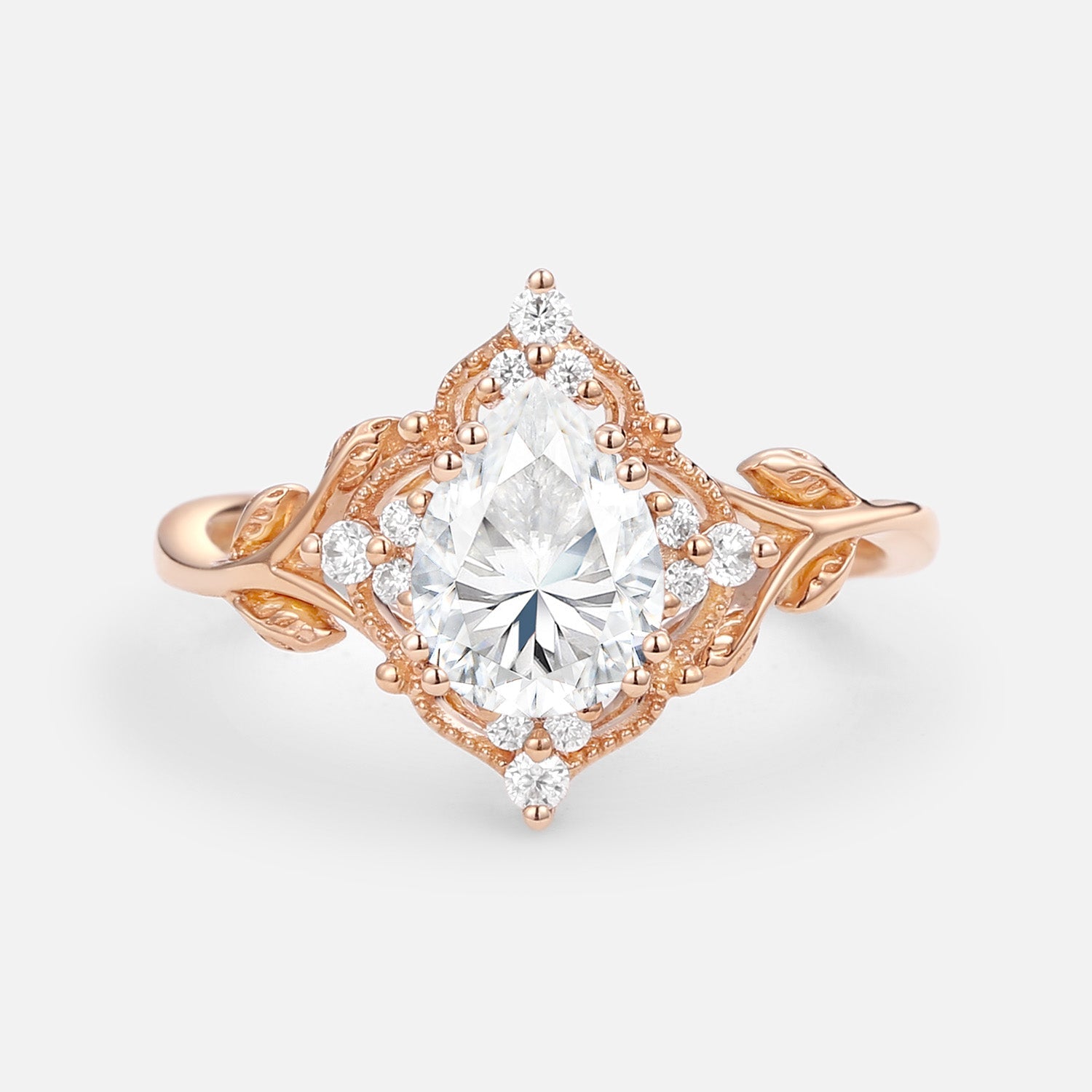 Vintage floral engagement rings Pear Moissanite Leafy Engagement Ring